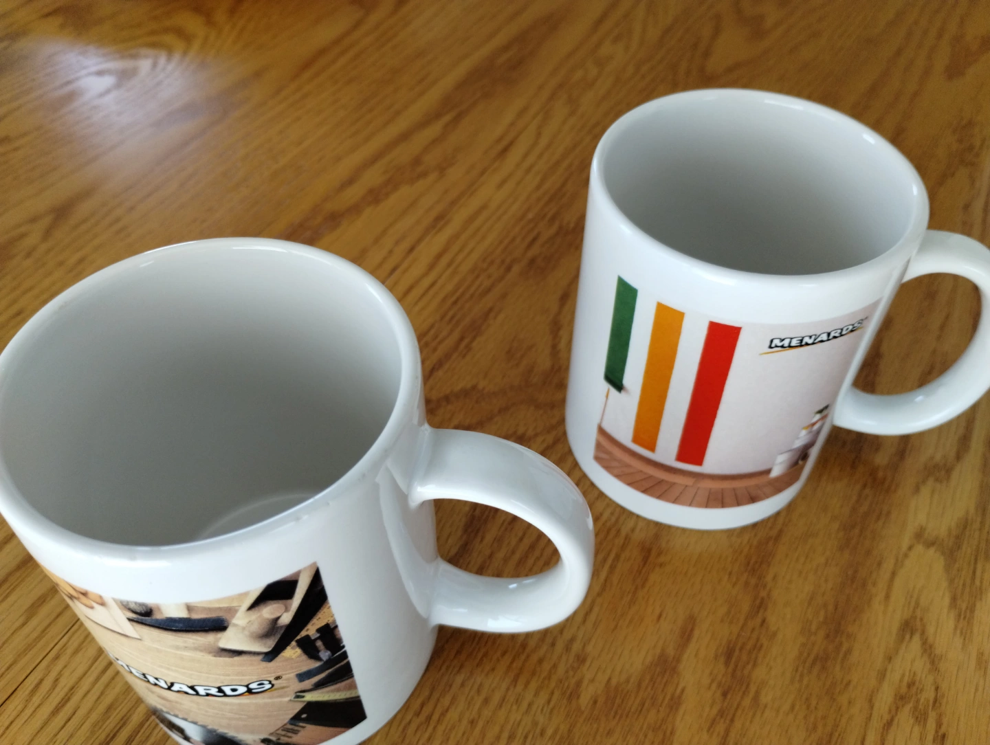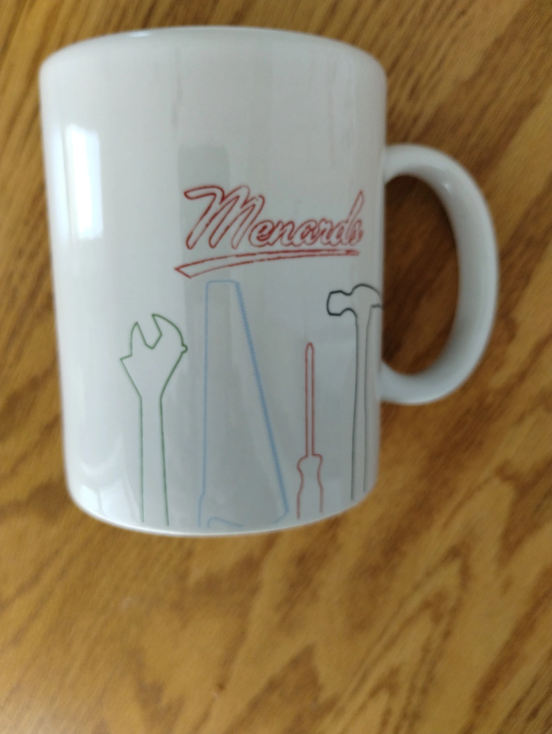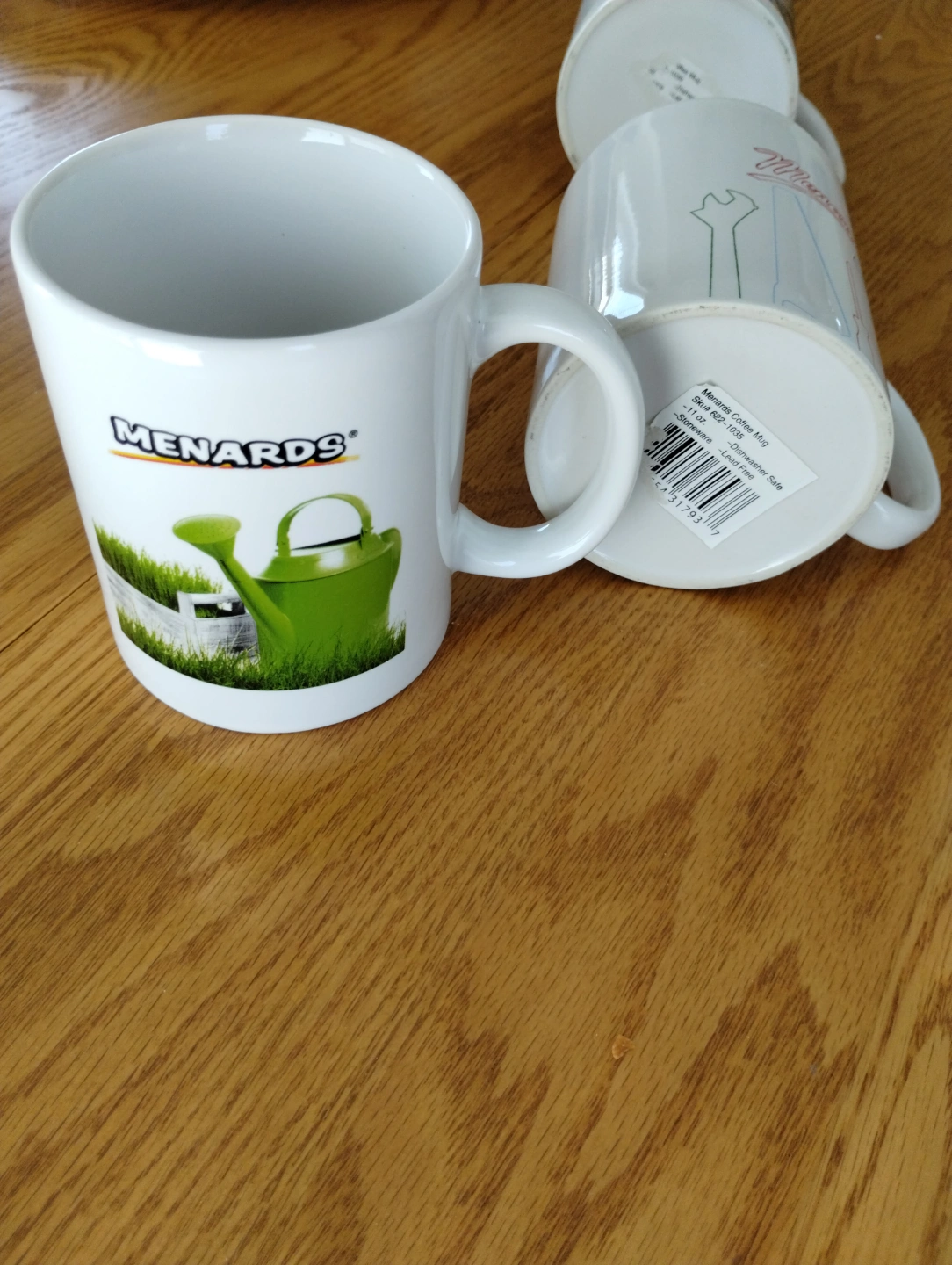 Six unique Menards coffee mugs. Various designs feature tools, a watering can, a race car, and more. Collectible and in excellent condition. Perfect for the Menards enthusiast! New and never used. $12
