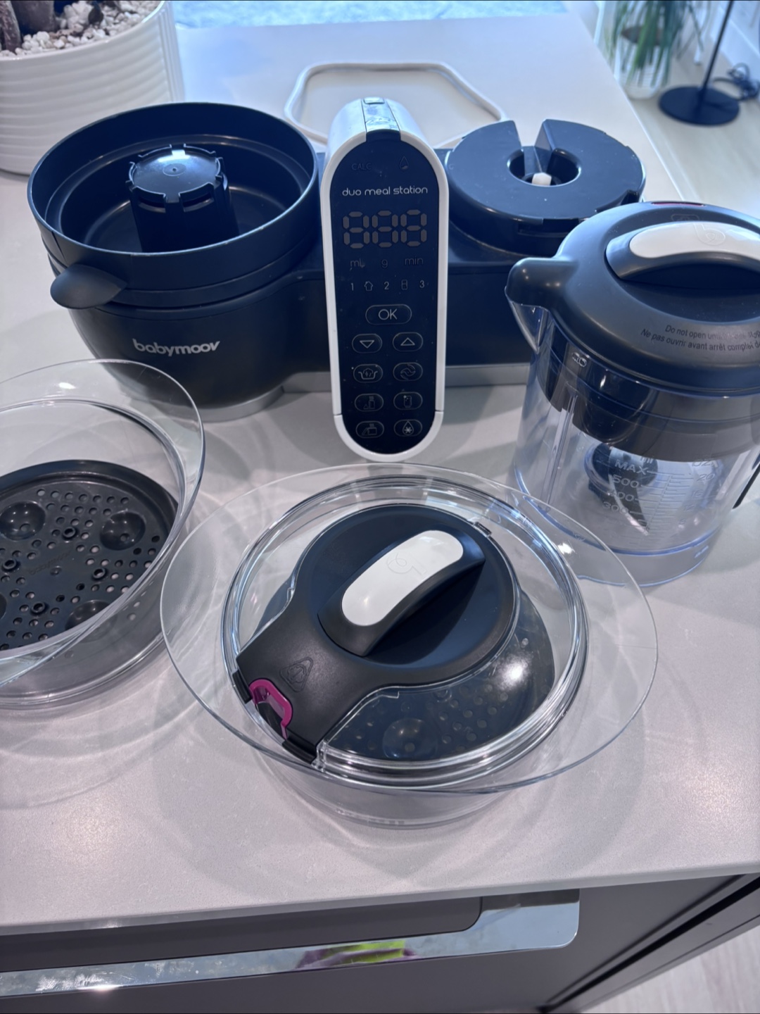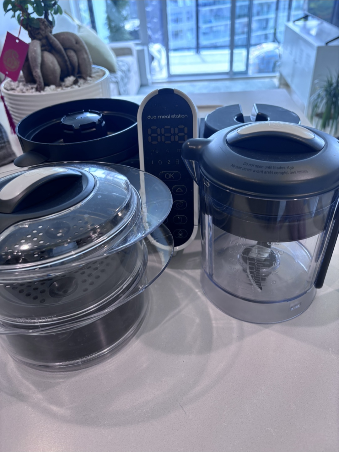 Used baby food maker. Includes steamer, blender, and control panel. Great for making healthy purees and meals for baby.