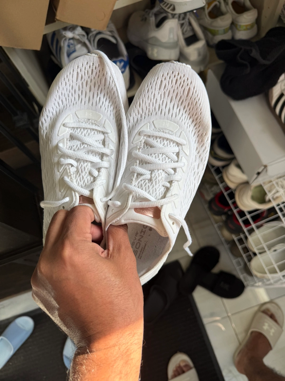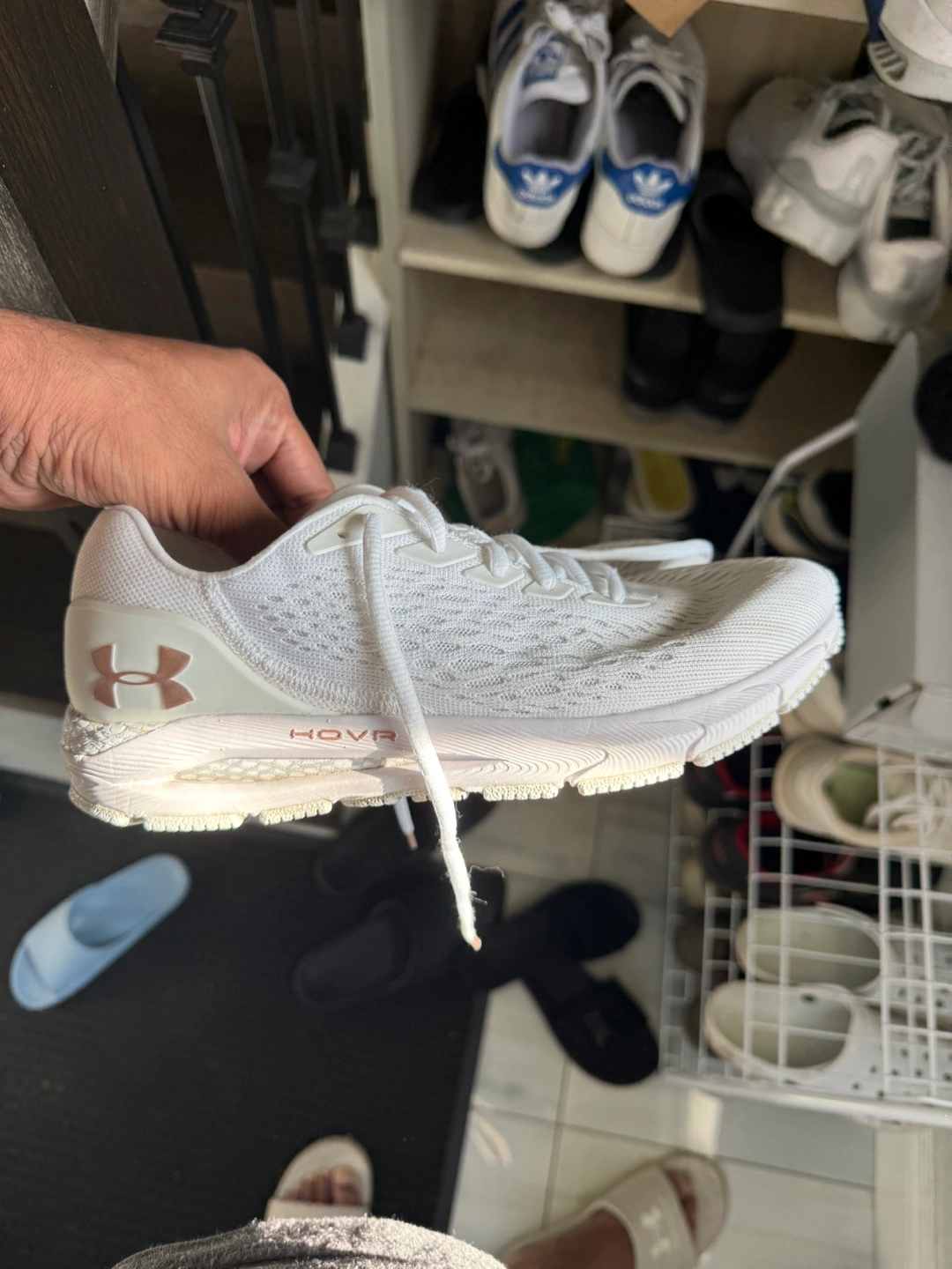 White Under Armour Hovr Sonic 3 running shoes. Women's size 9 . Lightly used, good condition. Breathable knit upper. Supportive cushioning.