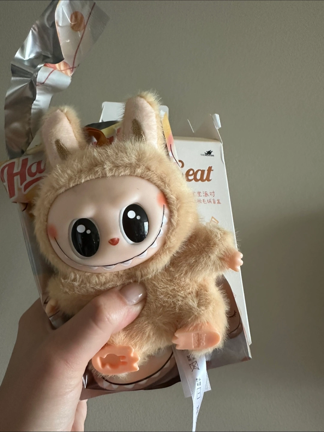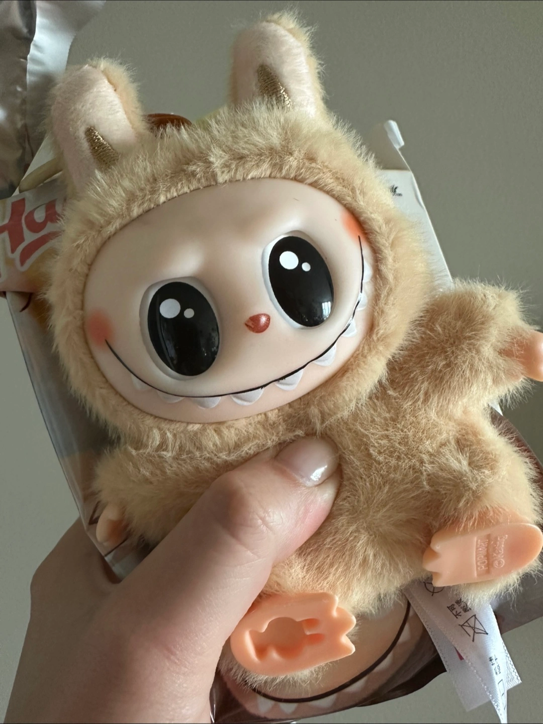 Cute collectible plush toy. Features a tan fuzzy texture, bunny ears, and a unique monster-like face. Comes in original packaging. Dupe. Price is firm, cash only. Pick up downtown only.