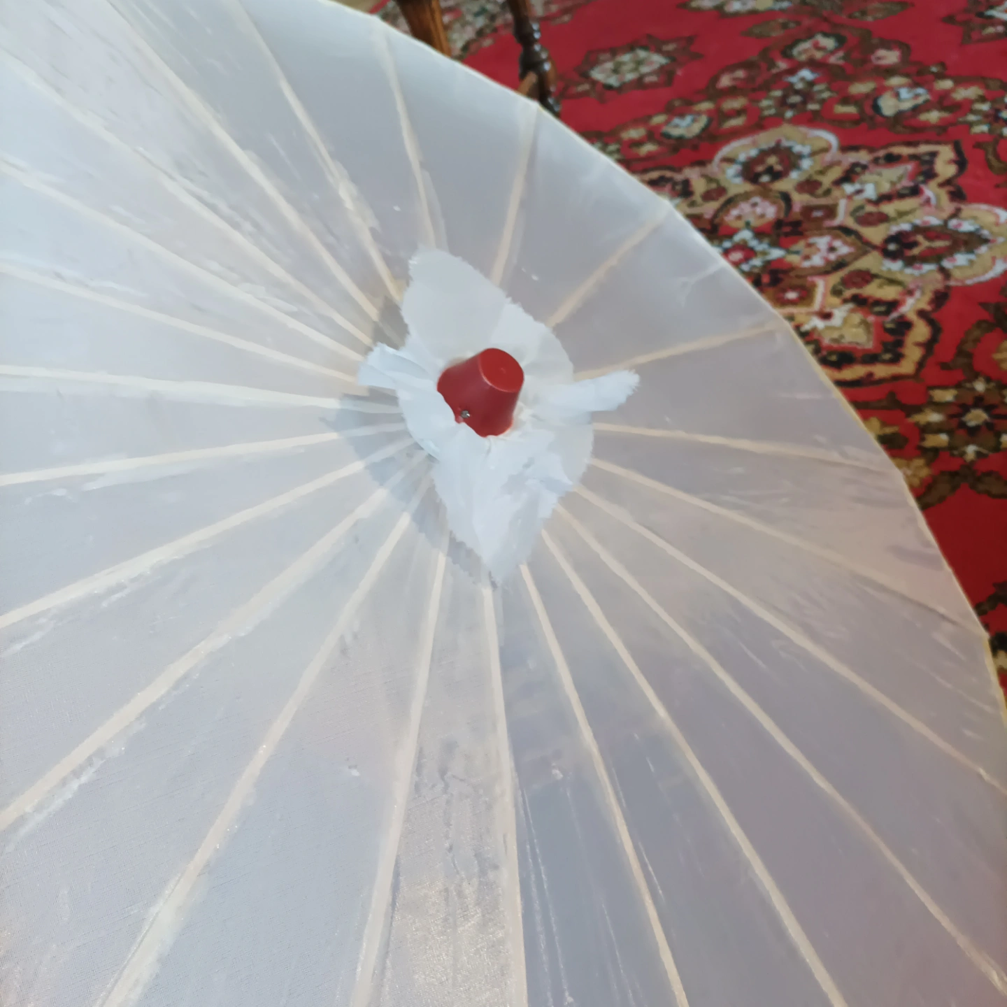 154Beautiful off-white Japanese, Chinese ambrella . Unique design. Perfect for décor or photoshoots. Color: Beige,White; Product Name: Chinese Umbrella; Net Weight: 131g Suitable for: Lady; Pattern: Pure Size Type: Regular; Material: Nylon,Bamboo, Wood Package Content: 1 x Chinese Umbrella; Open Dia(Approx.): 55.5cm/21.9" Folded Size: 5 x 38.5cm/2" x 15.2"(D*L); Handle Size: 2.1 x 6.4cm/0.8" x 2.5