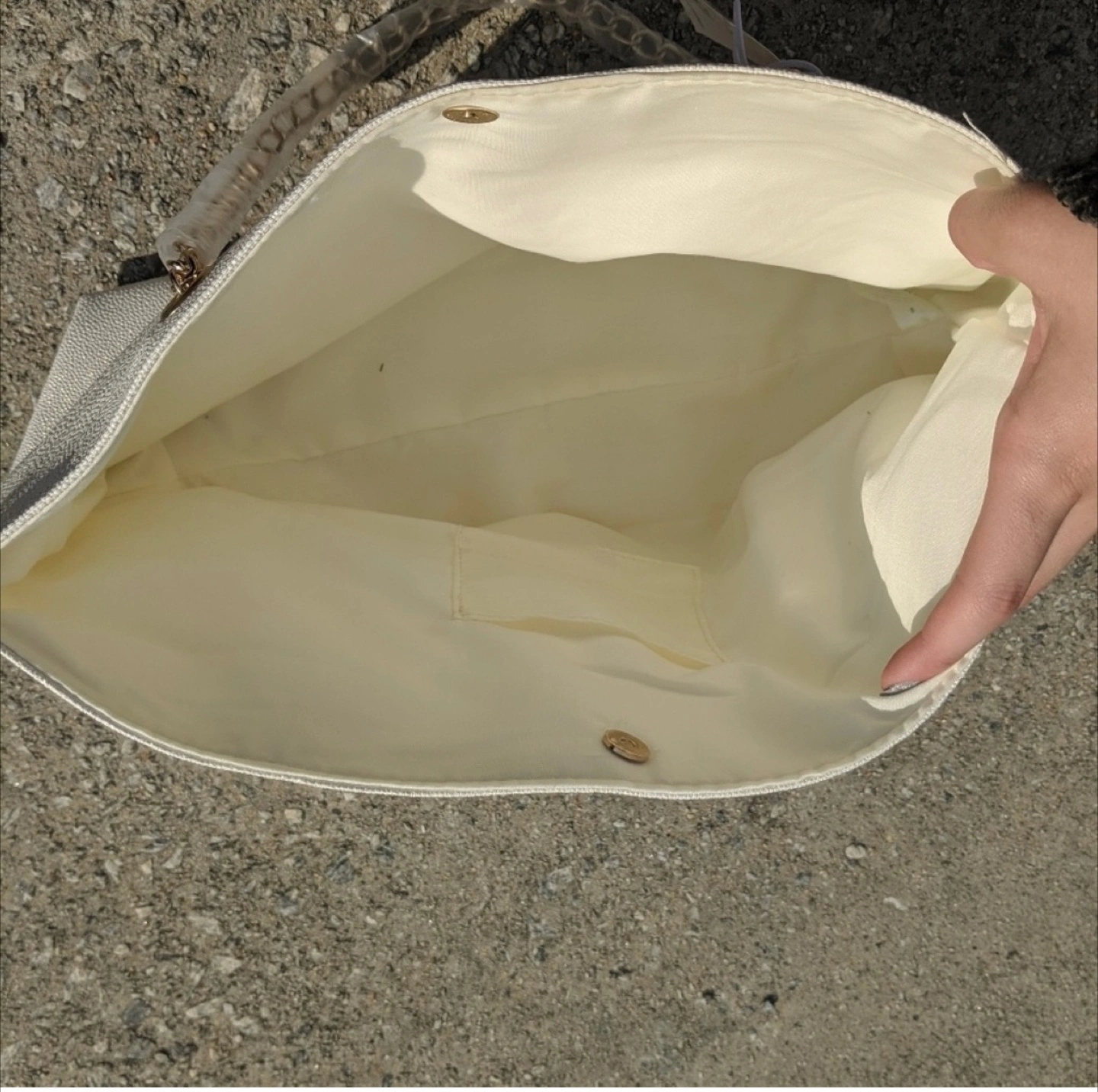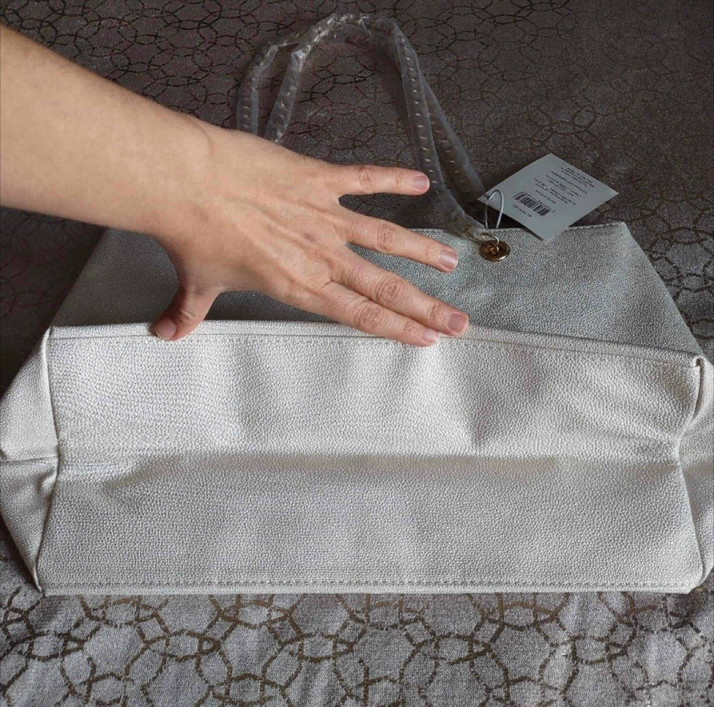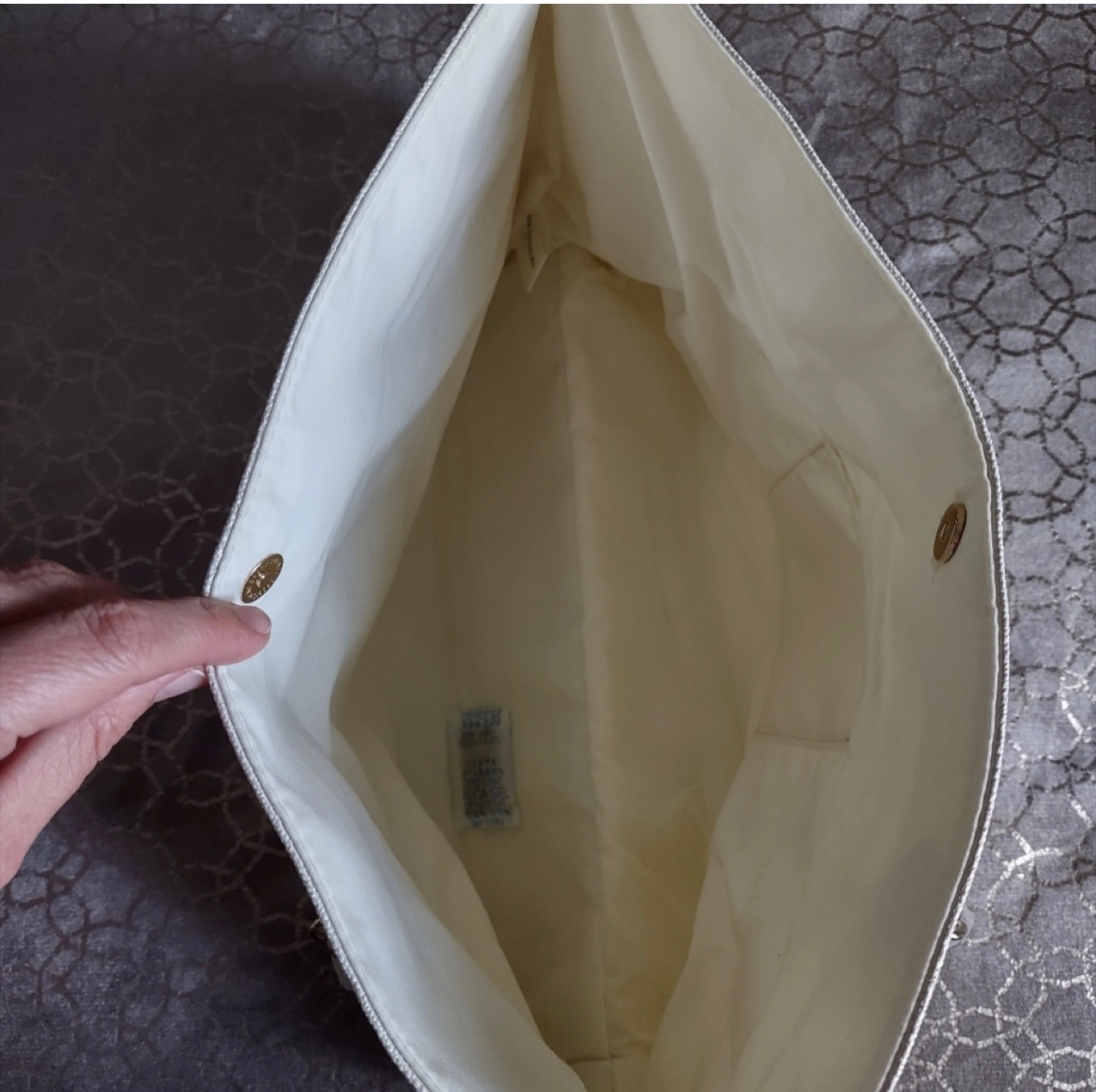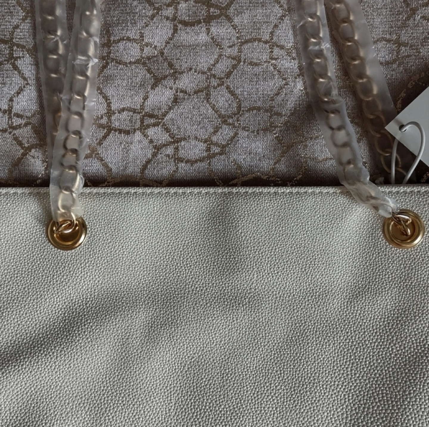 New ivory/Gold tote bag. With Gold-toned hardware. Chain-link straps. Spacious interior. Perfect for everyday use or Gift