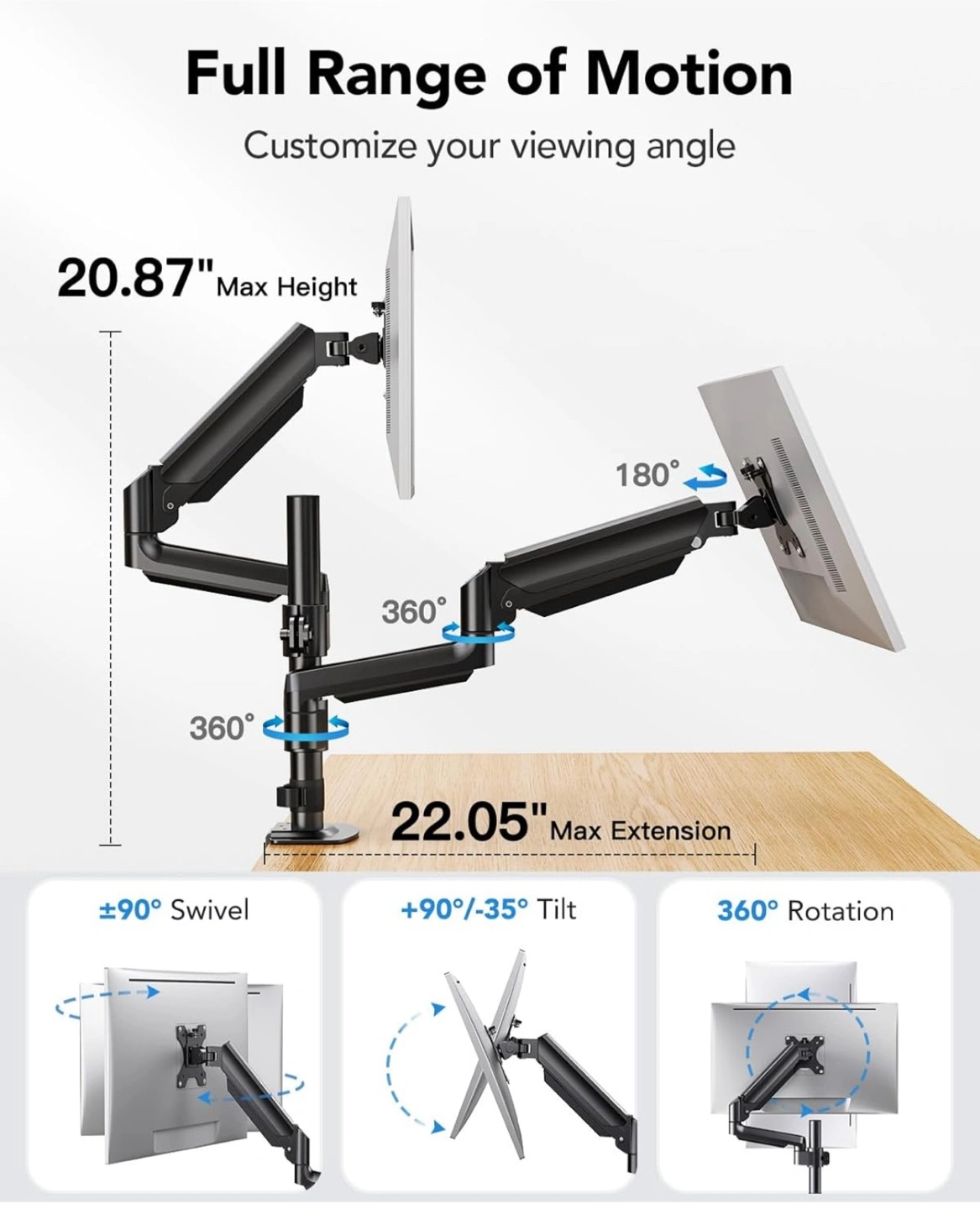Dual Monitor Desk Mount - Ergonomic Full Motion Stand