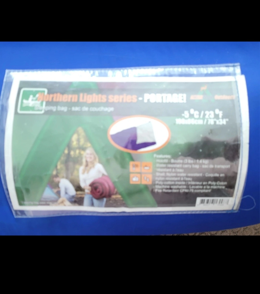 Indoor/outdoor lightweight waterproof sleeping bag. Portable and compact. Great for camping.