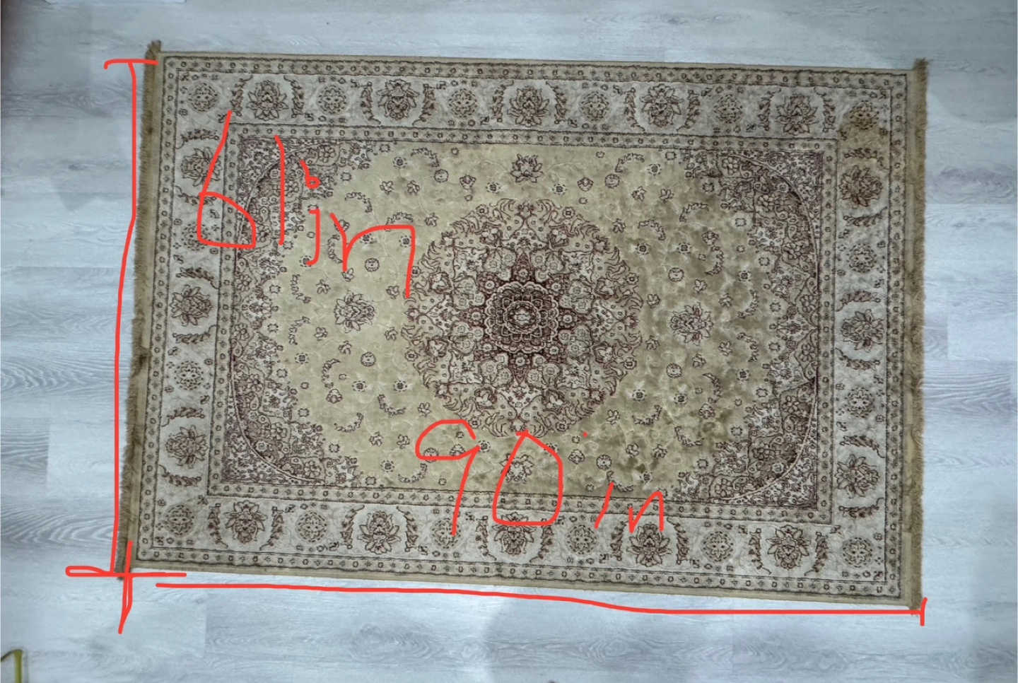 Beautiful large area rug. Beige colour with brown detailing. Intricate pattern. Measures approximately 6ft x7.5 feet . Shows new