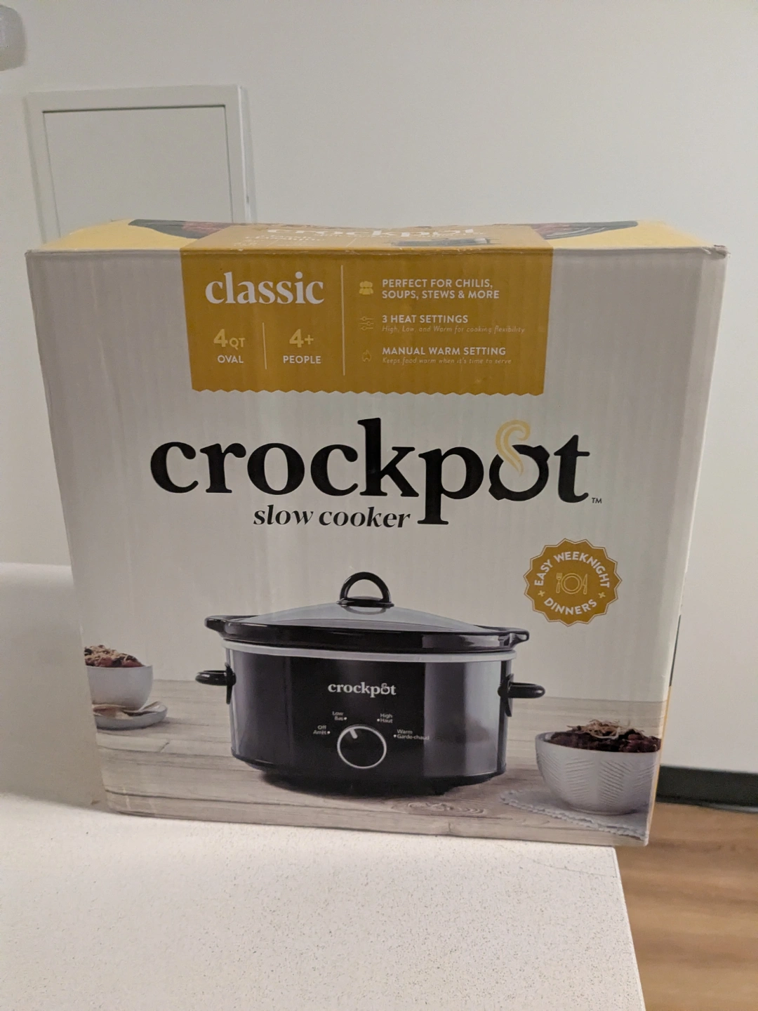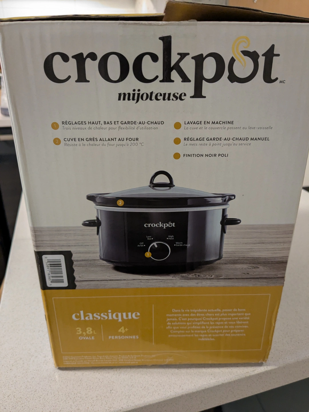Brand new 4-Quart Slow cooker/crockpot. Black and oval shape. Dishwasher safe.