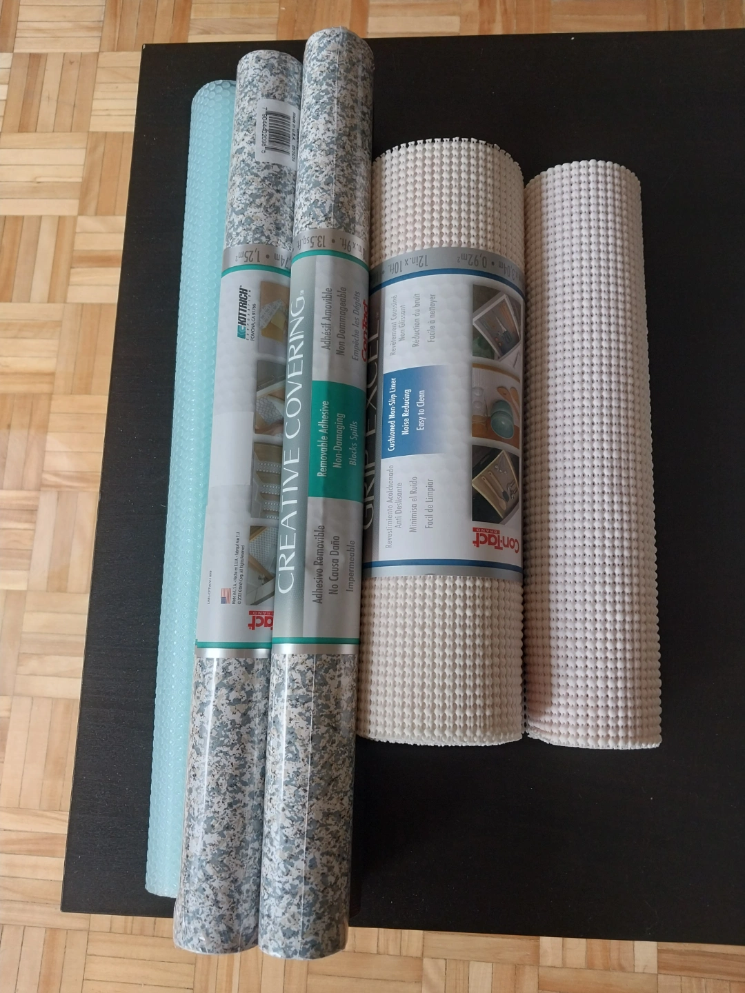 #freecycle Three rolls of shelf and drawer liners. Two rolls of Contact brand cushioned non-slip liners and one roll of Kittrich Creative Covering removable adhesive liner. Various colours and patterns.