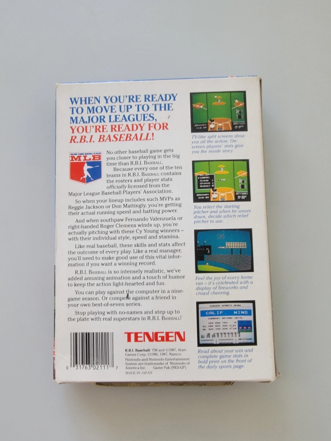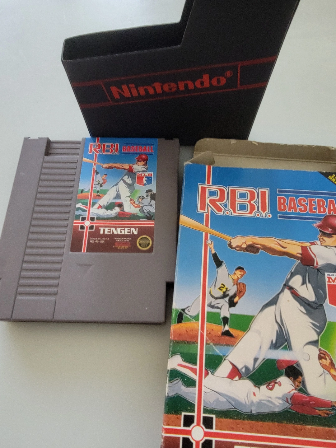 Vintage Nintendo NES game. Includes game cartridge and original box. Major League Baseball action. Licensed by MLB. Features realistic gameplay and player stats.