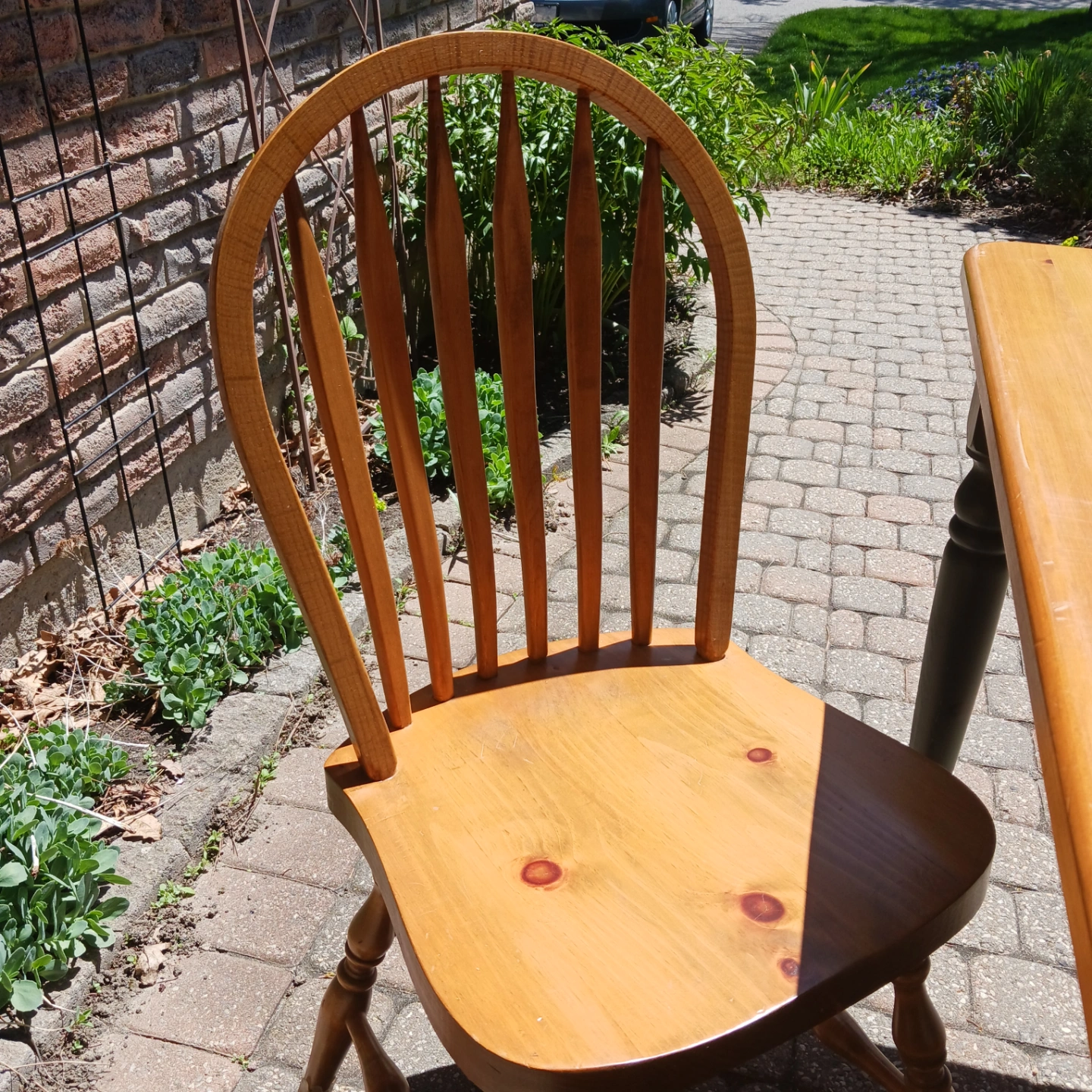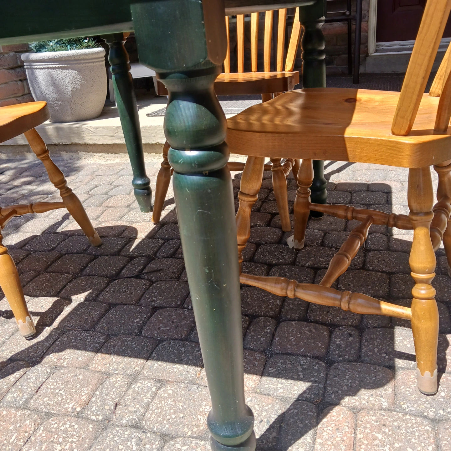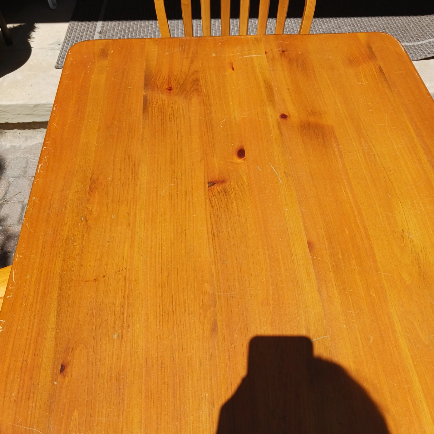 Pine kitchen table and three matching kitchen chairs. Some scratches on the table but otherwise good condition. Chairs in good condition.