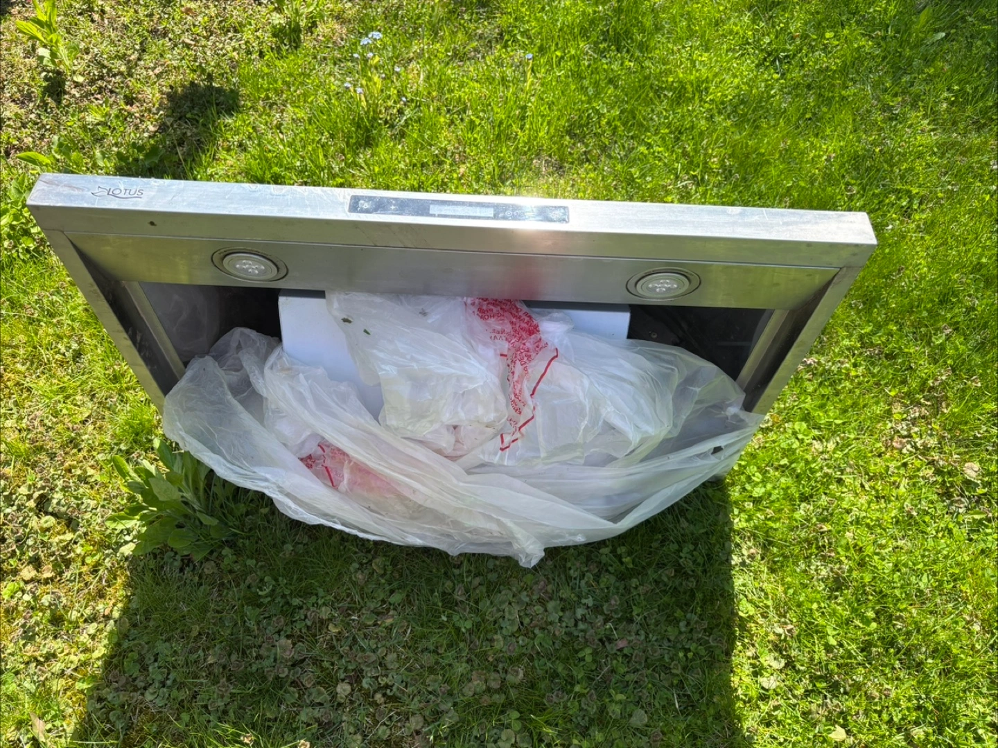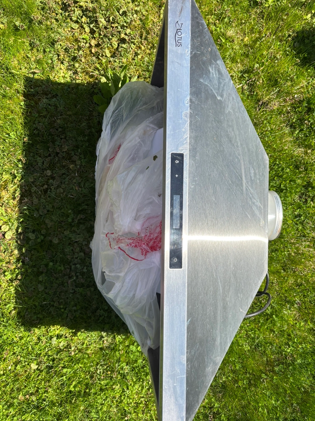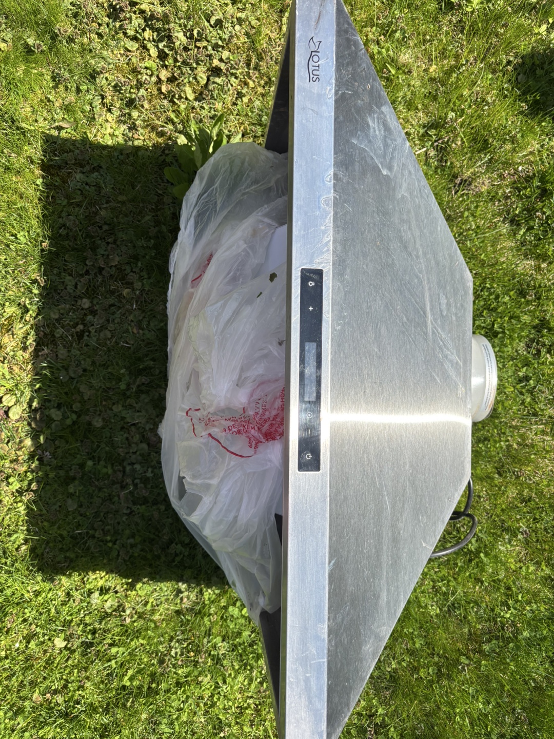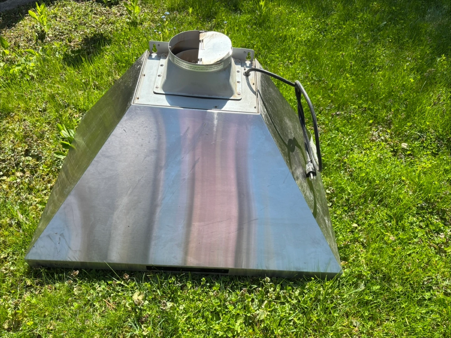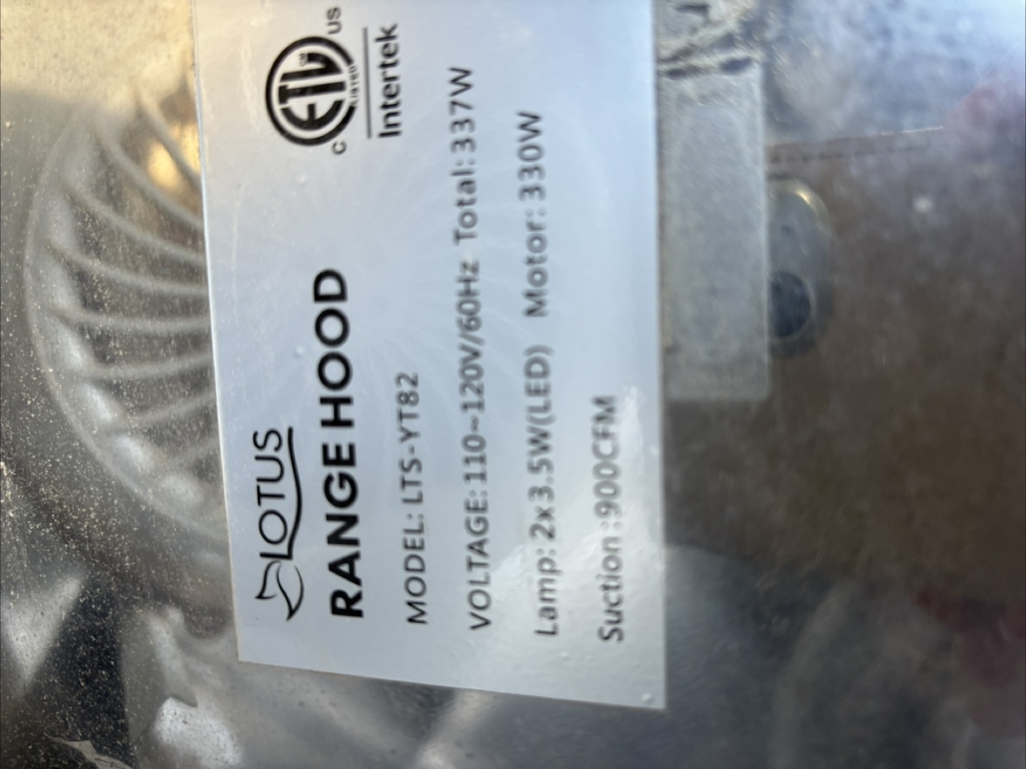 Stainless steel range hood. Model LTS-Y782. 90CFM suction. Includes lights. Used condition.