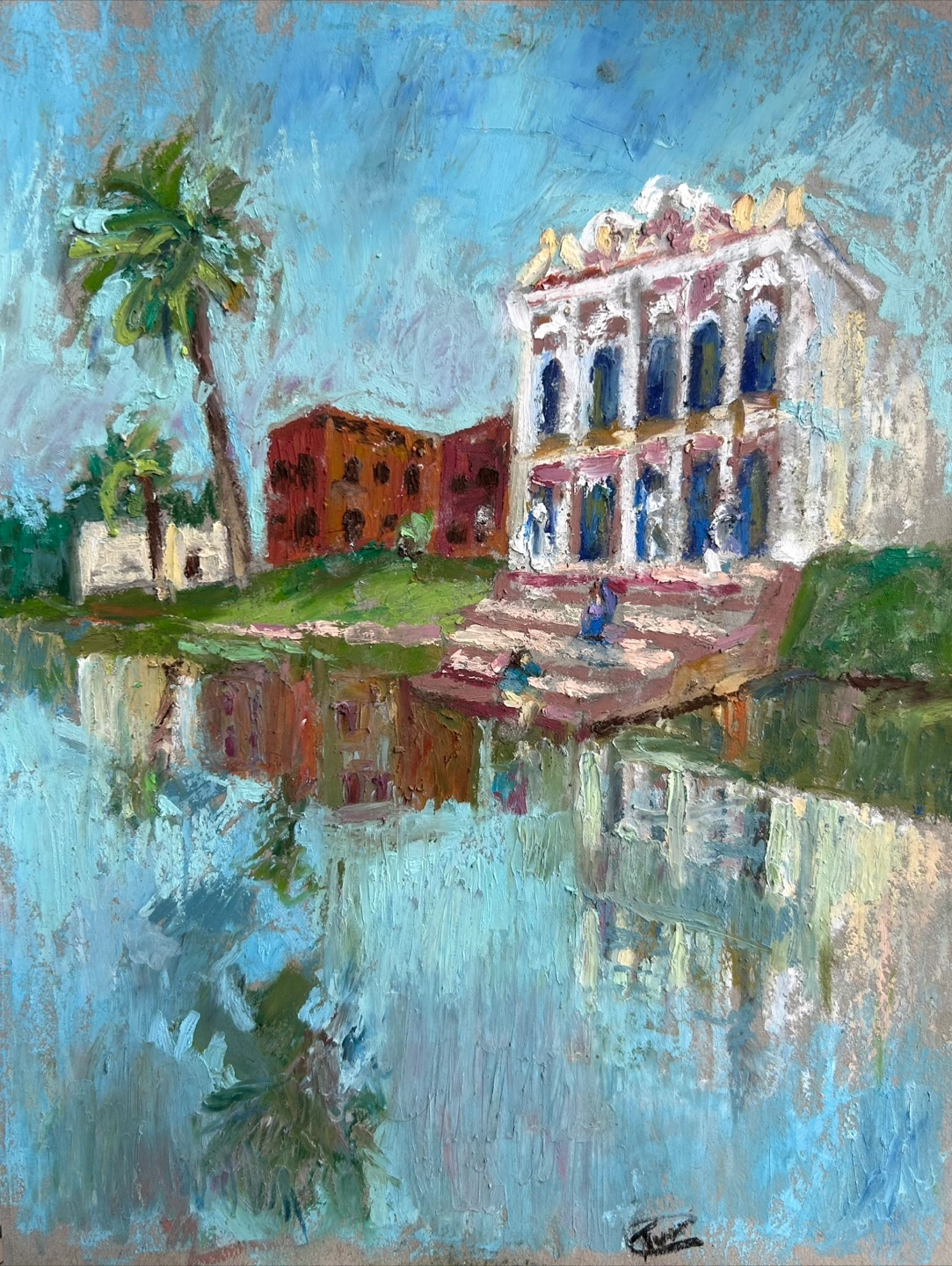 This is an original oil pastel painting. It will be shipped/handed over to you unframed, protected with glassine paper between two cardboards.