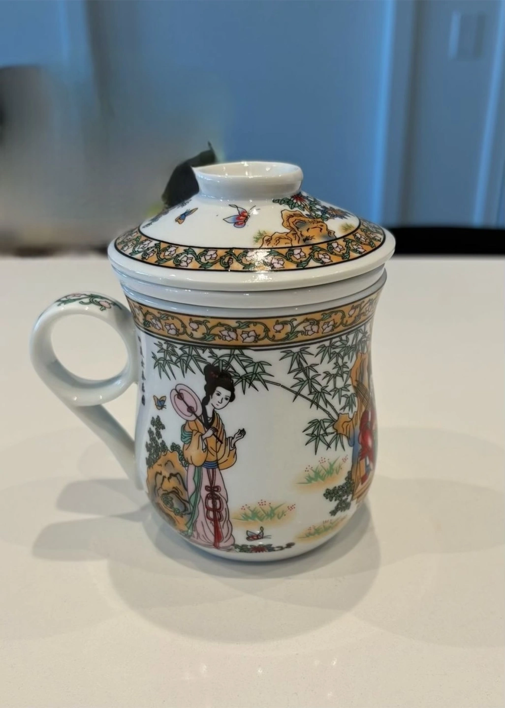 Vintage Asian-inspired Tea Cup with Infuser and Lid