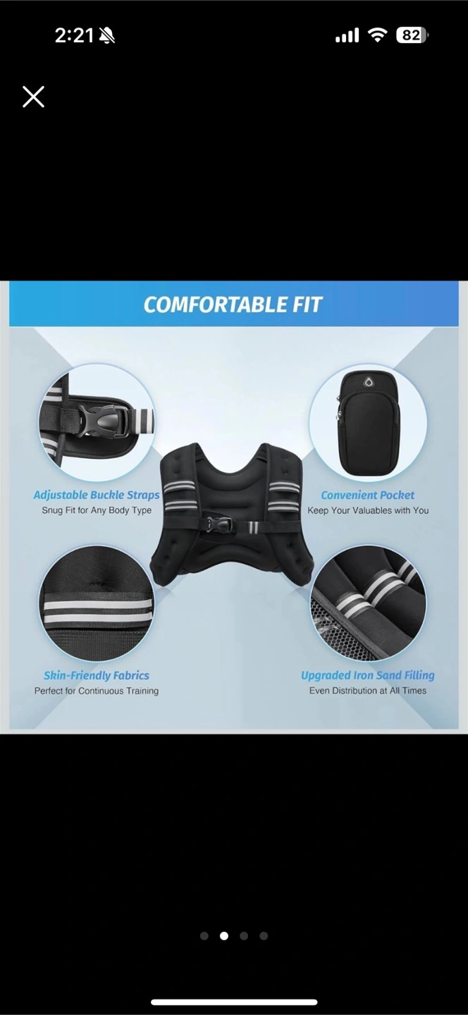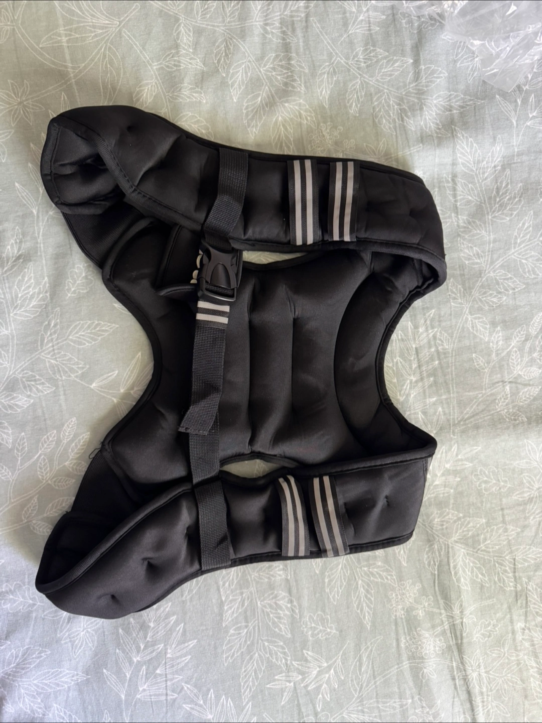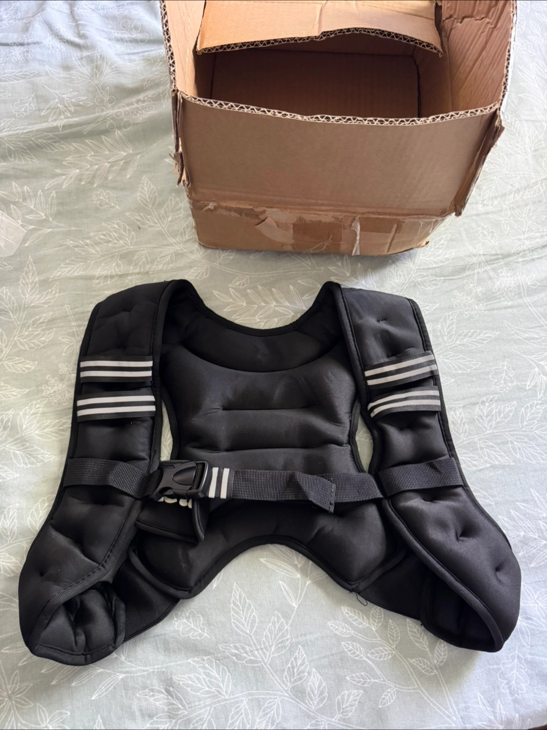 Its Brand new.PREMIUM MATERIAL: This strength training weight vest is built to last with durable neoprene rubber fabric, double-stitching, and weighted with iron sand for extreme durability through hundreds of different workouts. COMFORTABLE MATERIAL: Enjoy your workout in complete comfort with maximum mobility. With cushioned shoulder straps and gentle, non-chafing fabrics, you can go the extra mile in your personal fitness journey with ease and comfort! ADJUSTABLE FEATURES: Adjustable elastic straps and reflective stripes help this vest go any place at any time. For circuit training, weightlifting, cardio, strength training, weight loss, and beyond, this vest will take your workout to the next level! EVEN WEIGHT DISTRIBUTION: Evenly filled with iron sand, this well-balanced vest decreases injury risk while working out. Condition • New It was just opened to check and again packed Retail price is $59.99 Regular $75