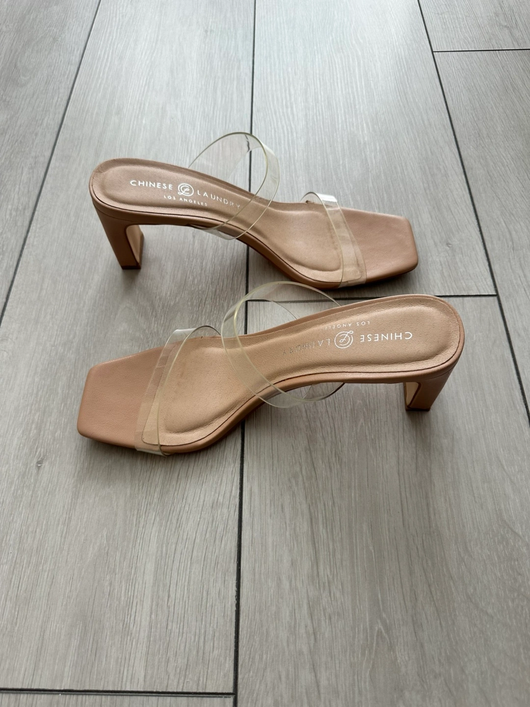 Selling nude Chinese Laundry PVC 3 inch heels in size US 8