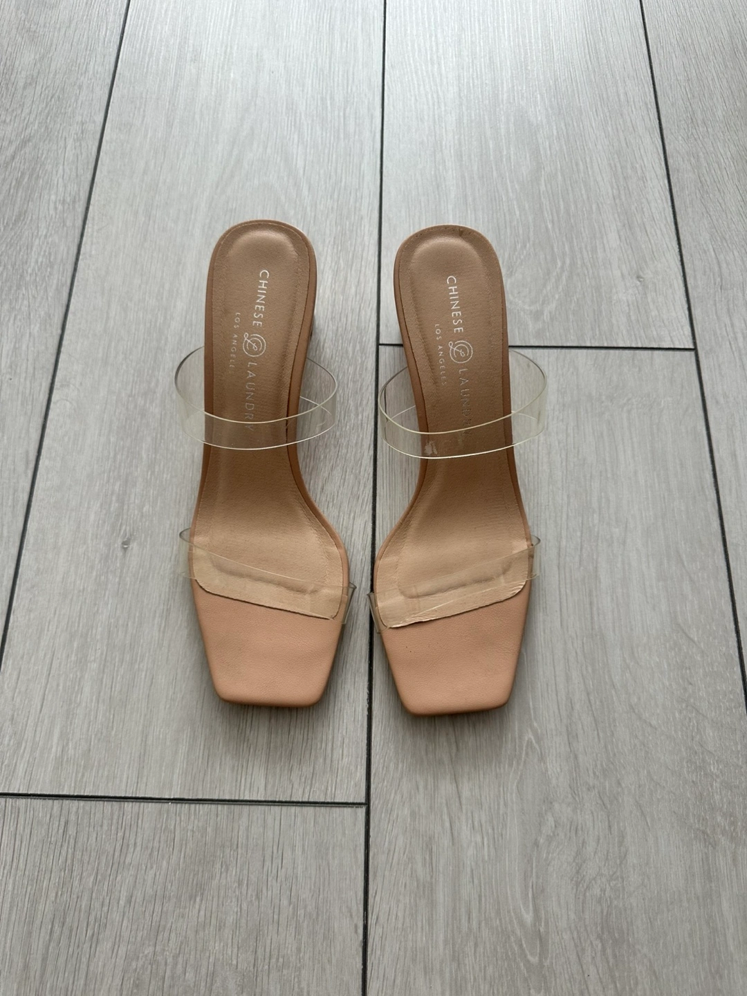 I’m selling a pair of nude Chinese Laundry PVC 3 inch heels in size US 8. It’s in excellent condition. I’ve only worn it once for 1 hour.
