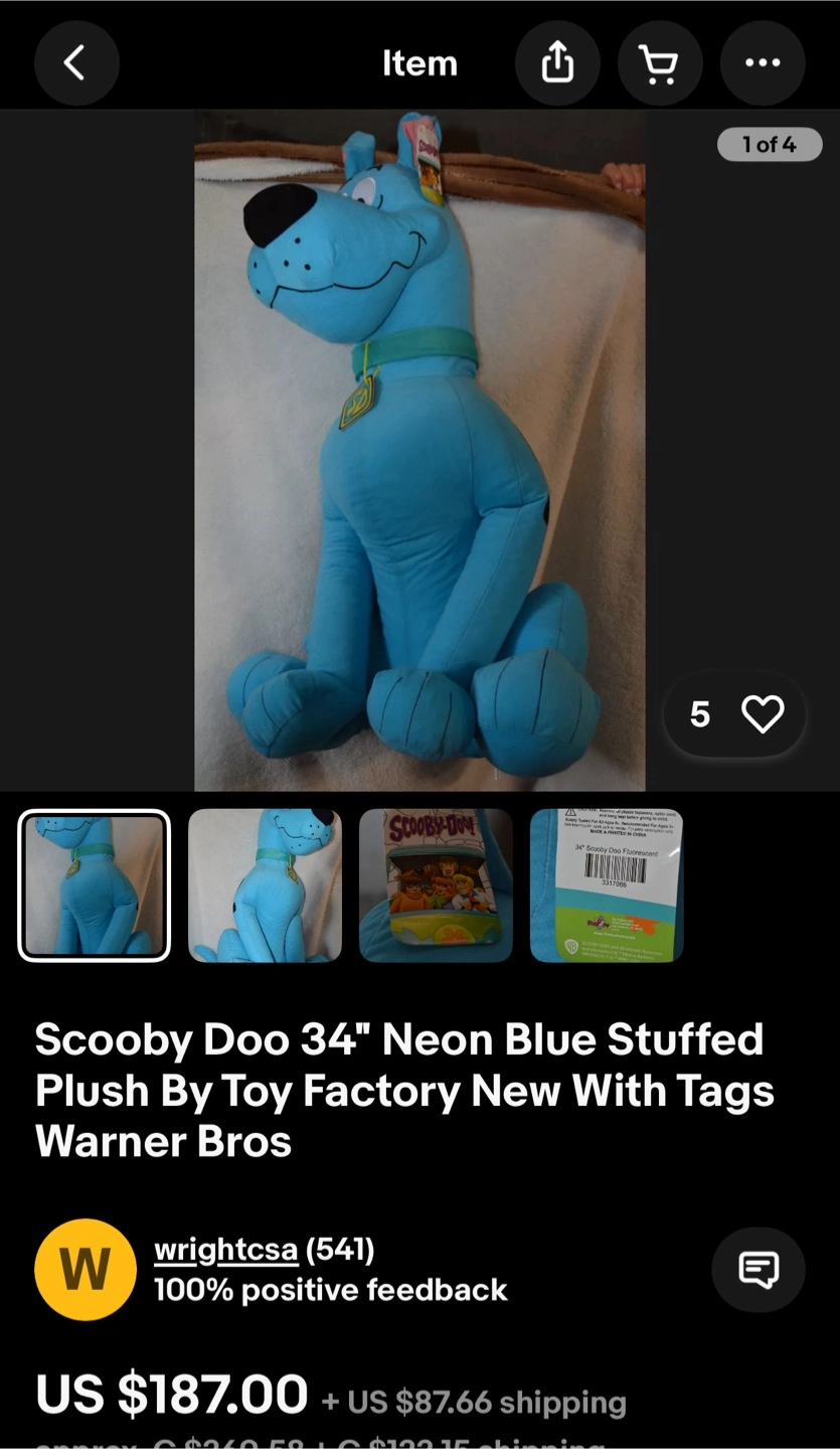 140Huge Scooby Doo 34" Blue Stuffed Plush With Tags Warner Bros Floor sample for 9 months so it has some wear but excellent deal. One on eBay selling for $225+ Pickup in Richmond Hill. Open to trades