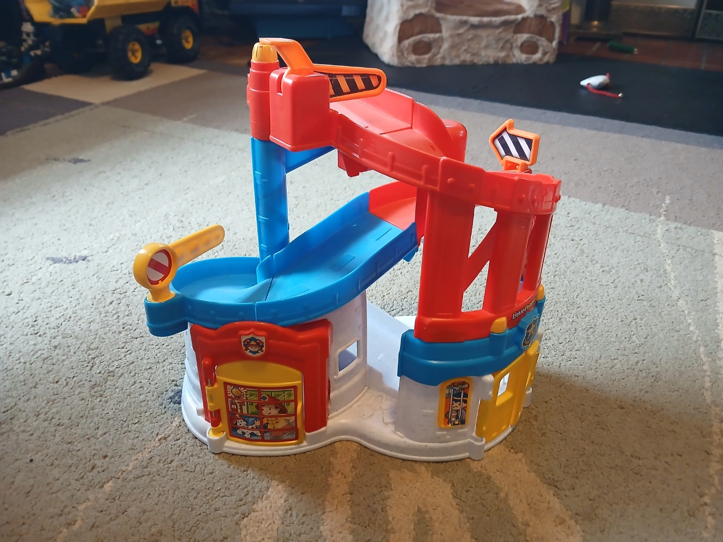 Fisher-Price Little People Race and Chase Rescue set. Ramp with doors for both fire and police stations. Structure only, no vehicles or figurines. Old-school, hard to find now (people are selling it online for $40), great shape, back when they built toys to last.