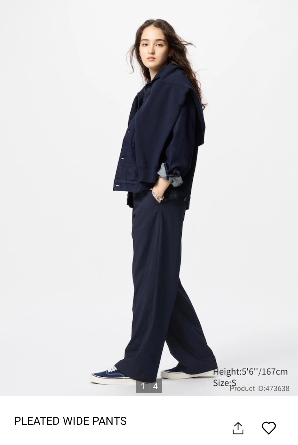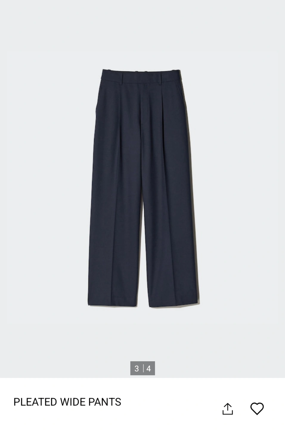 Uniqlo Pleated Wide Leg Pants - Navy - Size S