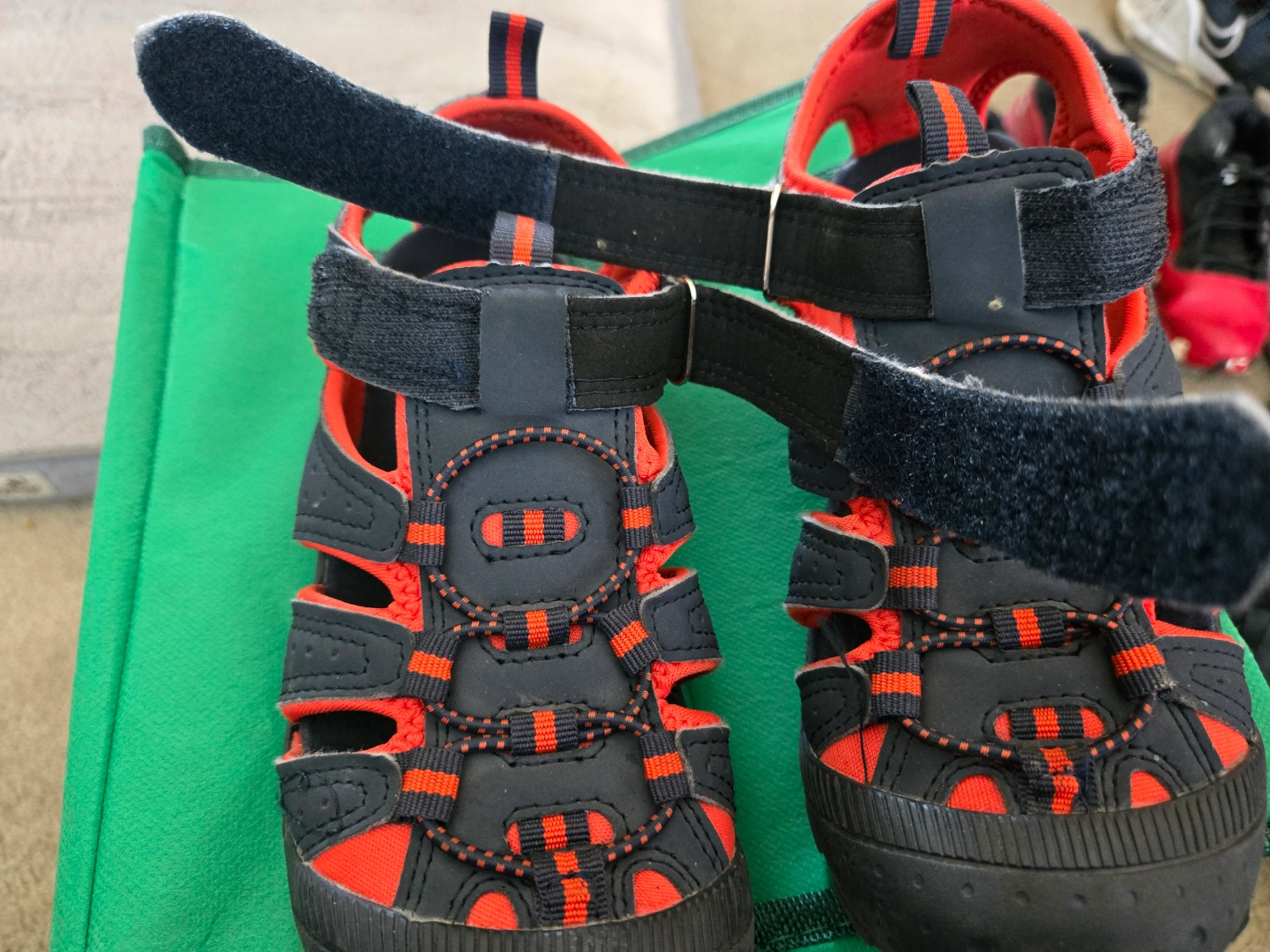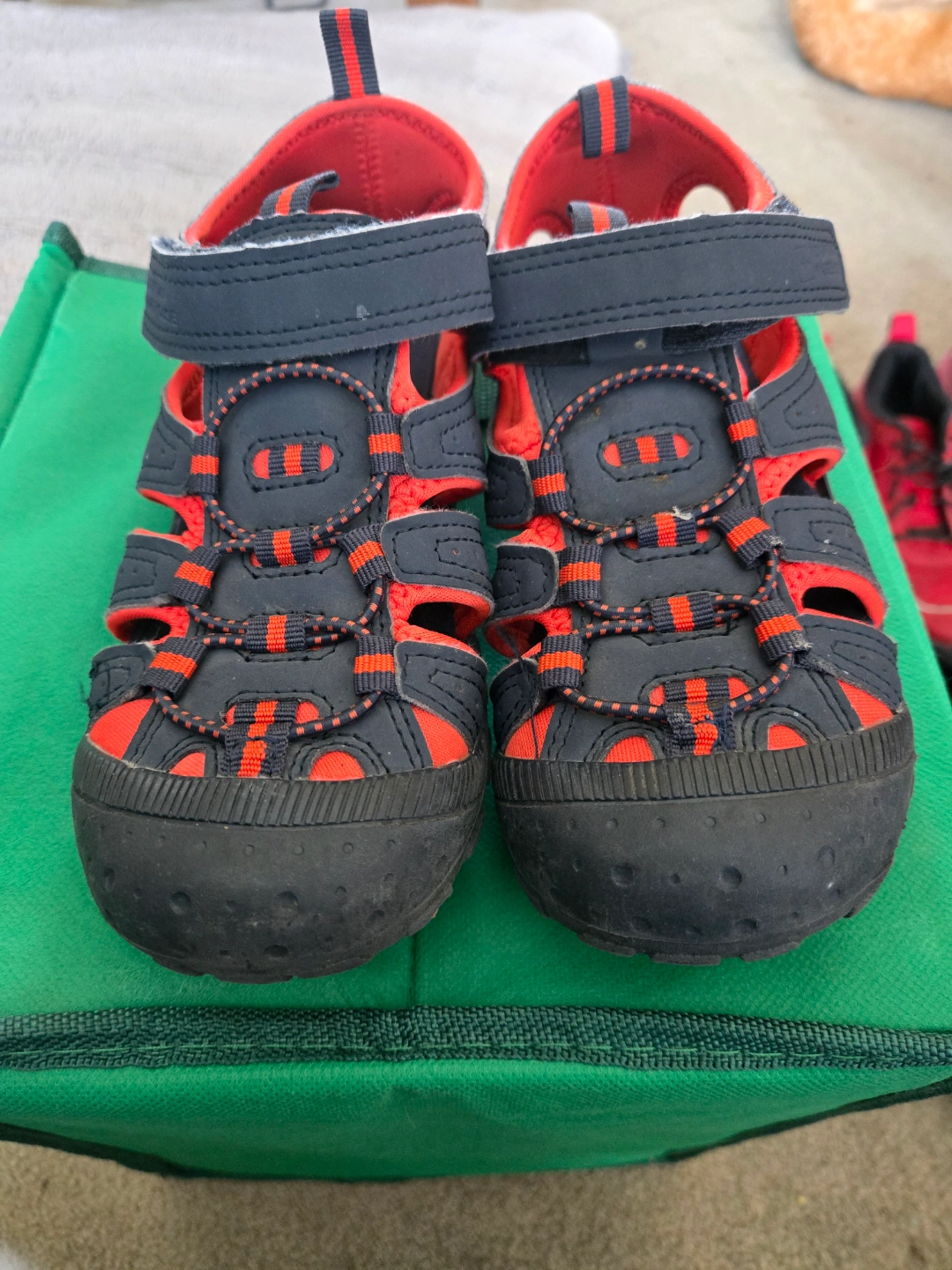 Kids' sandals. Blue and red. Velcro closures. Excellent, like new condition. Size 9C (US) / 27 (EU). Purchased in the U.K., used once at the beach. No holds.