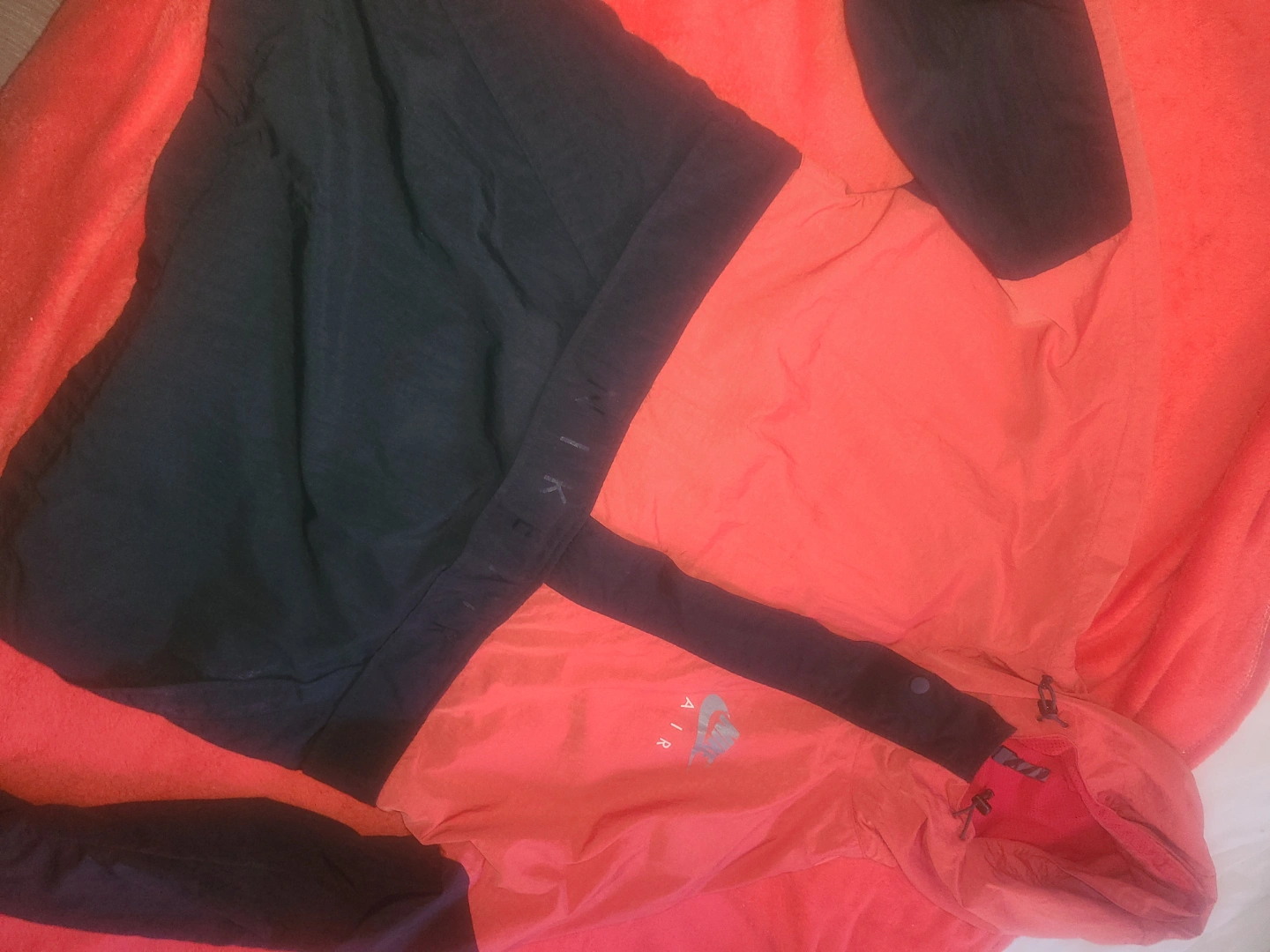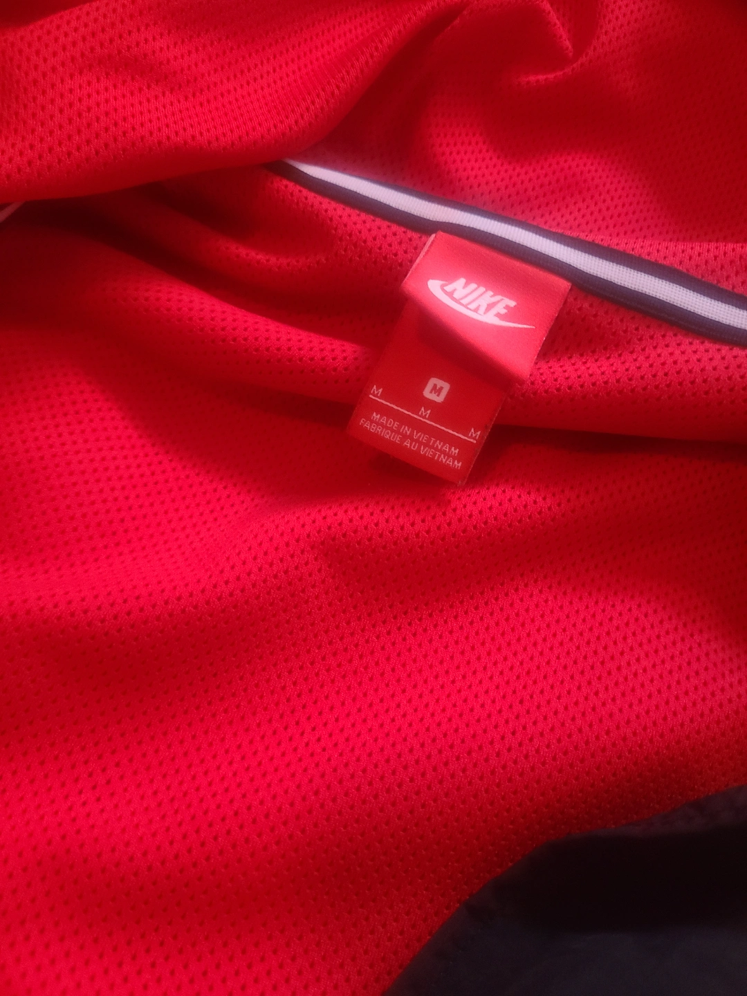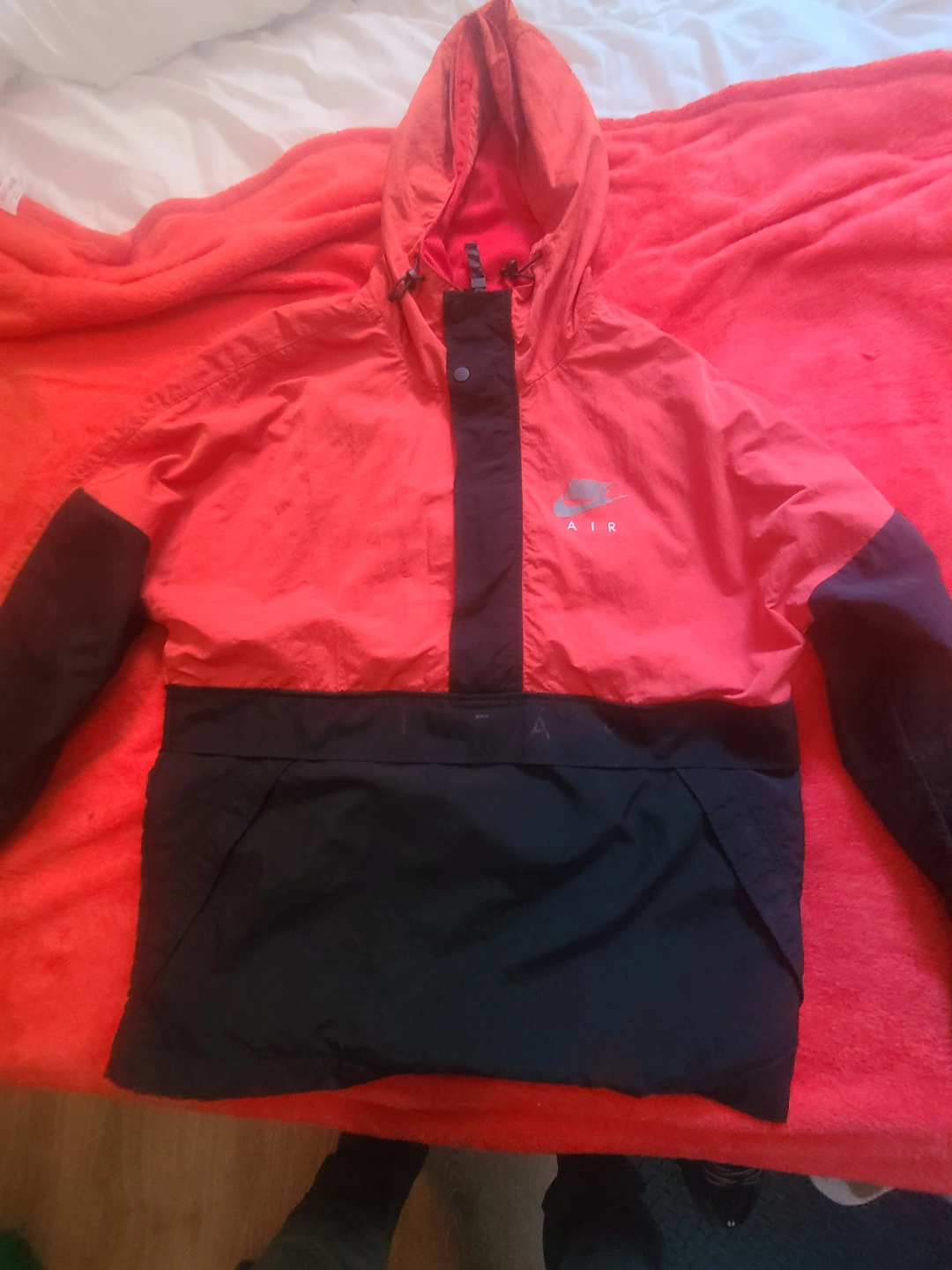 Men's Nike windbreaker. Red and black colour block design. Features a half-zip closure and a hood. kangaroo pocket and Joey pouch Size Medium. Made in Vietnam. paid 140 asking 50 in mint condition barely worn
