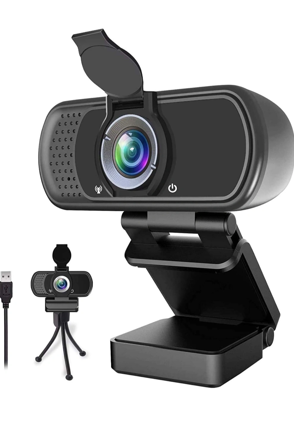 Wired USB webcam with privacy cover. Used only a few times and has sat in a box for awhile. No tripod is included. Description from Amazon listing: ZIQIAN 1080P Webcam,Live Streaming Web Camera with Stereo Microphone, Desktop or Laptop USB Webcam with 110 Degree View Angle, HD N5 Webcam for Video Calling, Conferencing, Streaming, Gaming