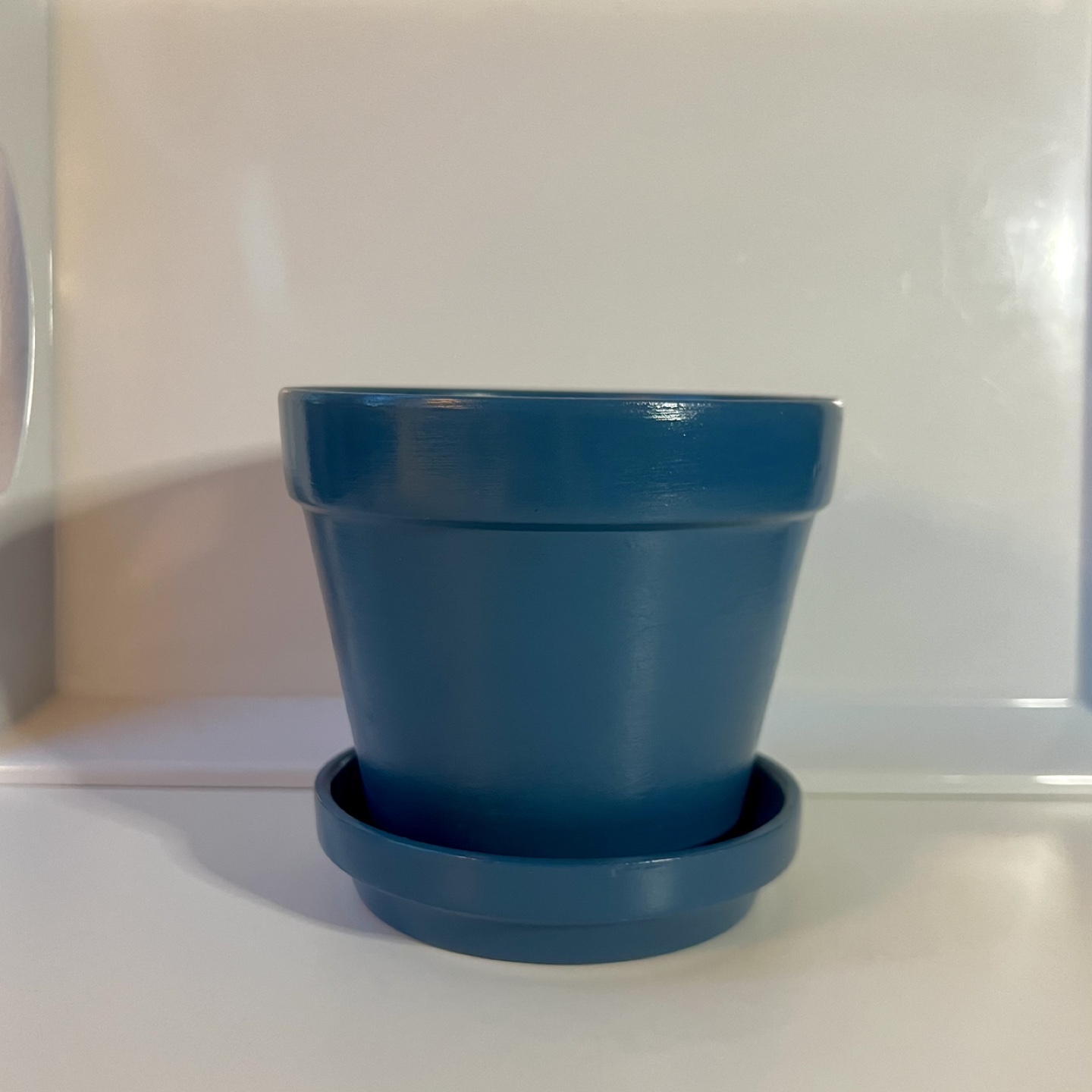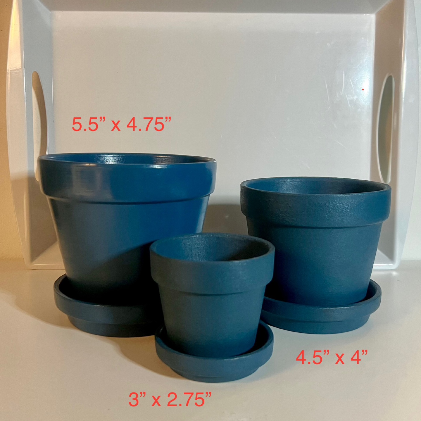 Add a splash of colour to your space with this set of 3 hand painted terracotta plant pots with matching saucers. Sizes vary (see photo). Perfect for succulents or small plants.