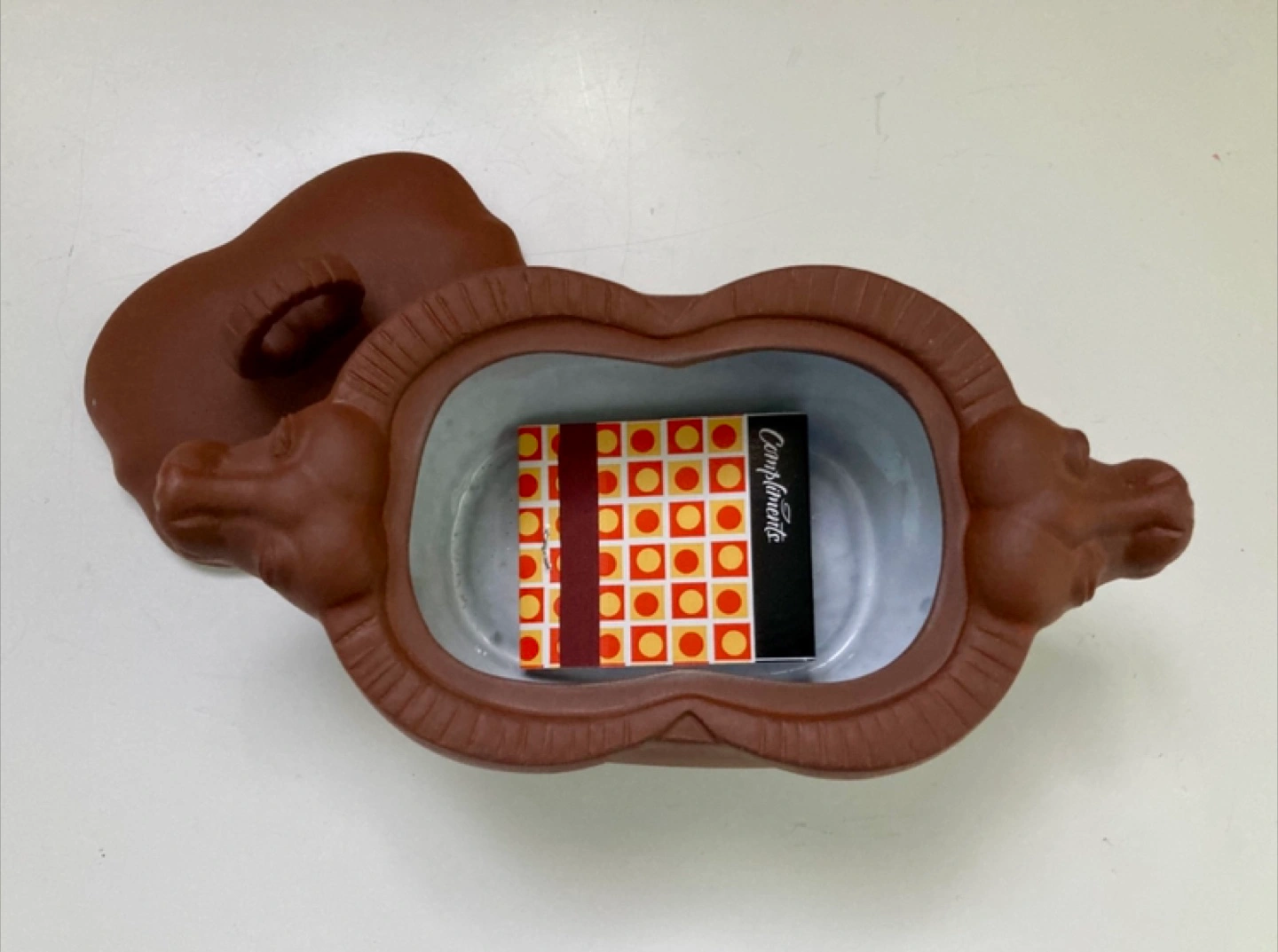 Vintage Japanese clay box. Features a unique 2 head cow design. Red clay, white glaze inside. Includes a lid. Excellent condition. Beautifully made! About 5 1/4” long 3” wide, 3” tall. Pick up in the Ossington and Davenport area.