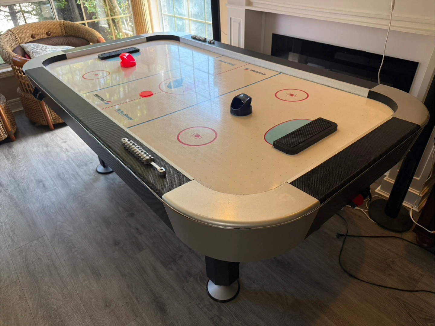 Excellent condition air hockey table. Includes mallets and pucks. Table is sturdy and well-maintained. Offer delivery at extra cost. DM for details