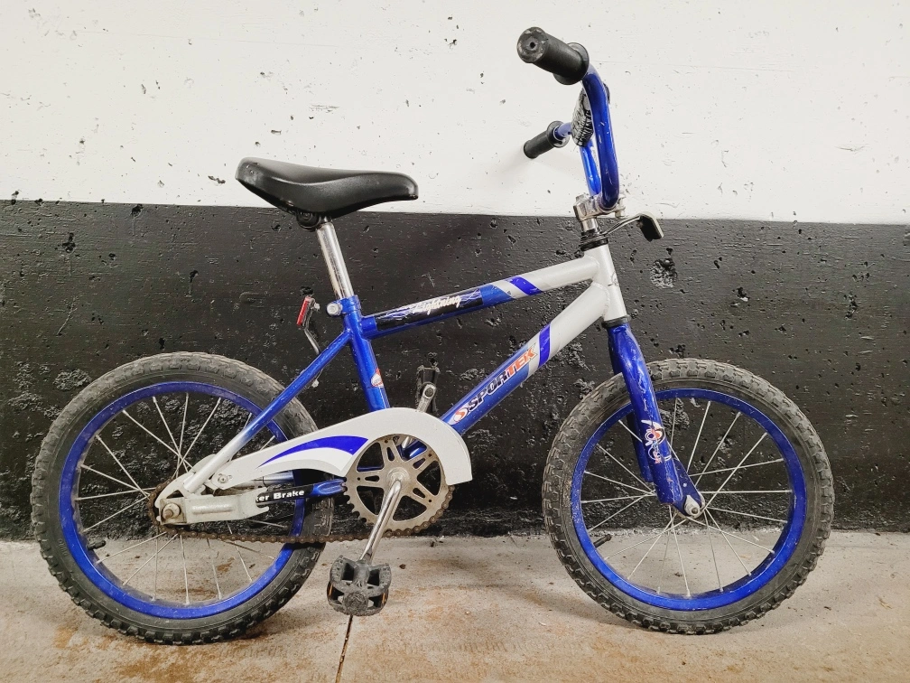 Blue and white children's bicycle. Features coaster brake. Great condition.