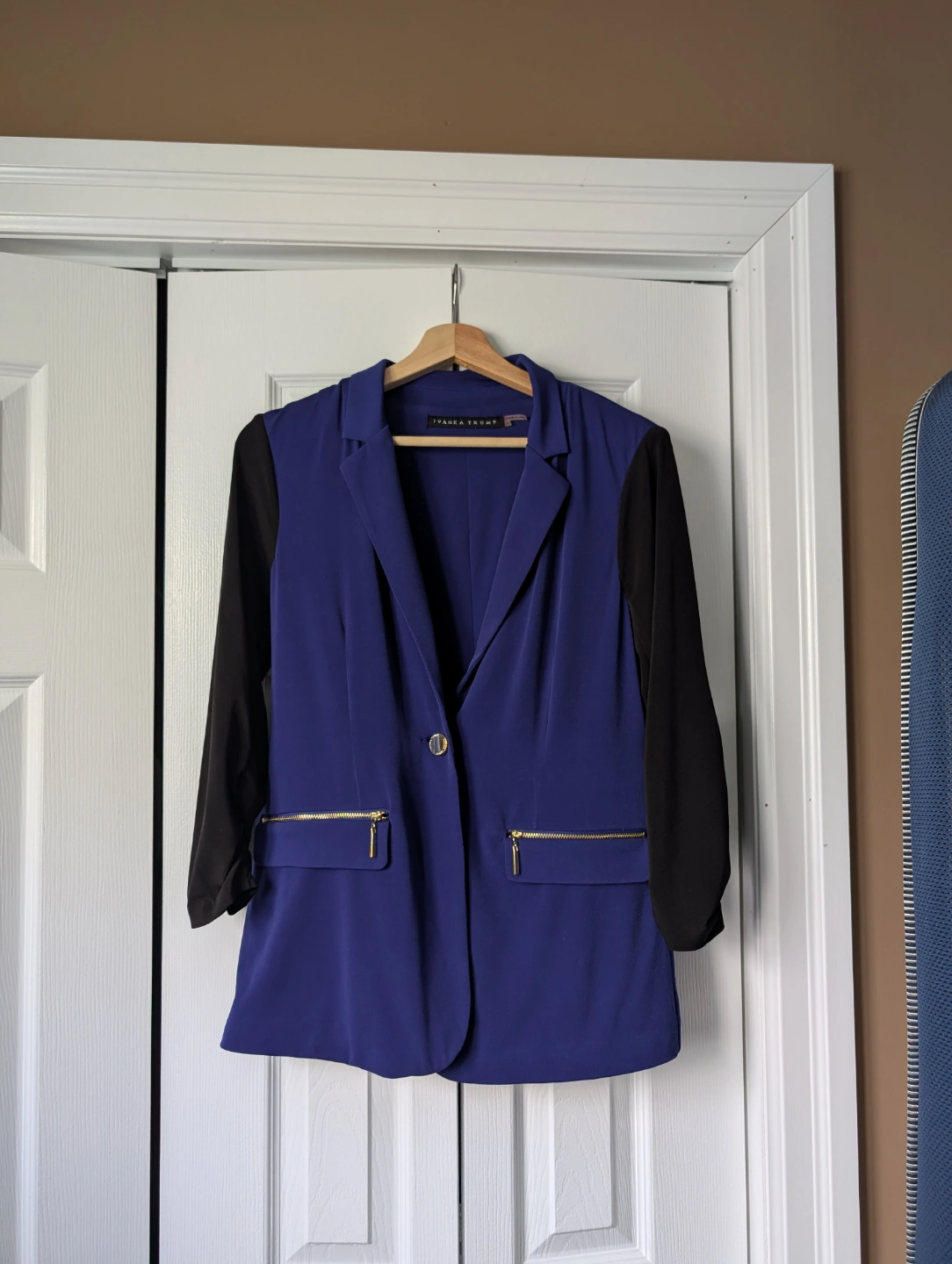 Women's Blue Blazer with 3/4 black sleeve