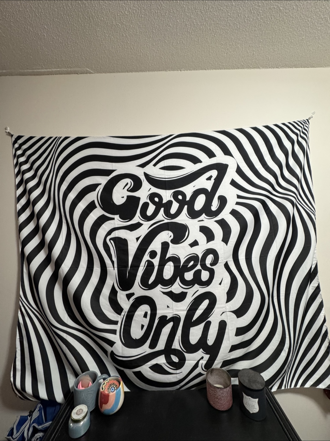 1 / 11 / 1Buy & SellGood Vibes Only Wall TapestryGood Vibes Only Wall Tapestry$10Black and white wall hanging. Features wavy lines and cursive lettering. Good Vibes Only. Moving and no longer need. Pick up in west end!ConditionNewDimensions130x150cmWHERE TO MEETWest EndView MapSELLERverifiedVictoriaW End974 reviews0 chats·0 favorites·7 viewsSEND CHAT TO SELLERHi Victoria! I’m interested in your listing.Hi Victoria! I’m interested in your listing.Get the Karrot app to chatSign In to chat