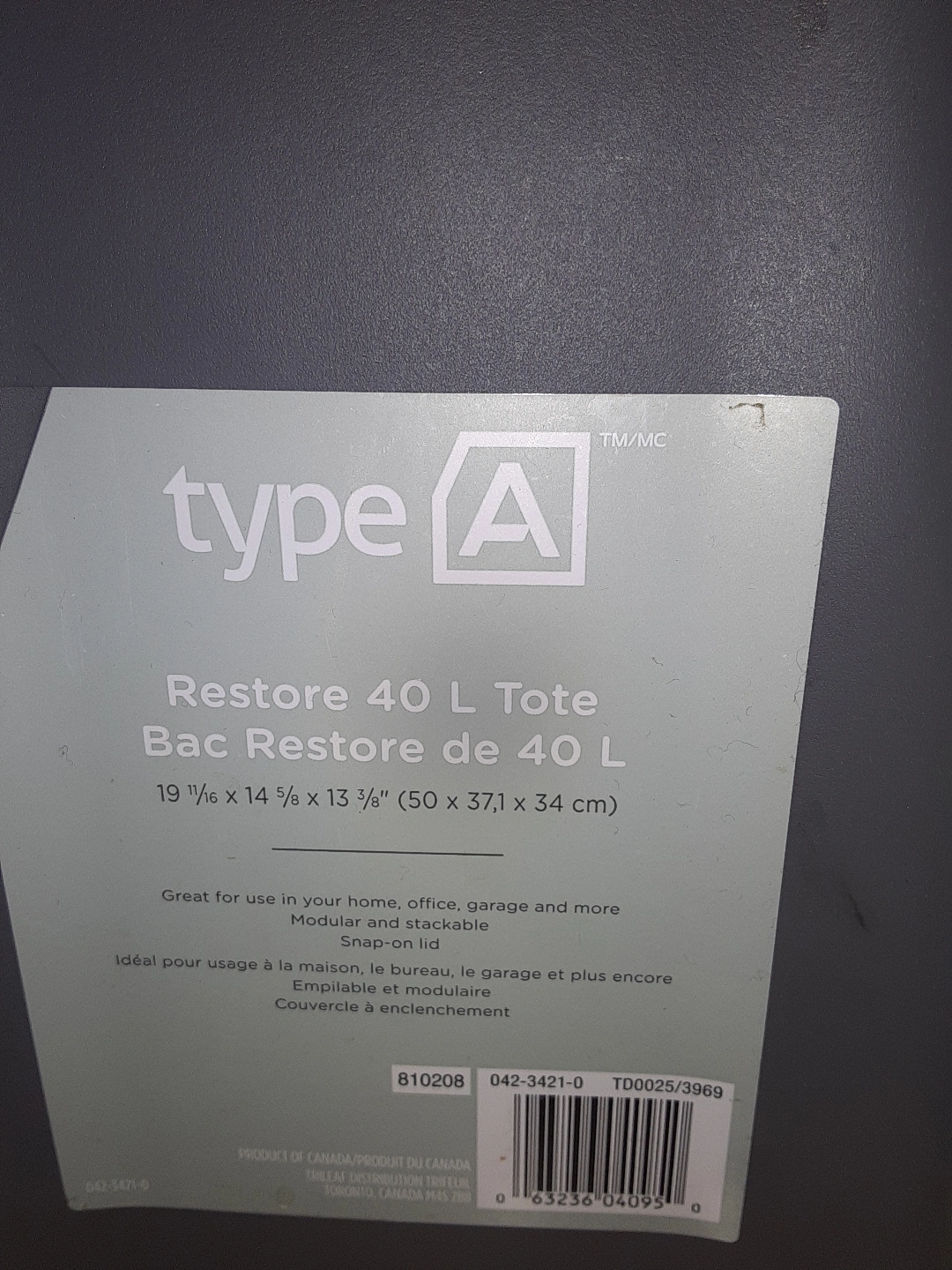 Set of three grey plastic storage containers. Ideal for organizing closets, garages, or basements. Stackable design. Durable and watertight.