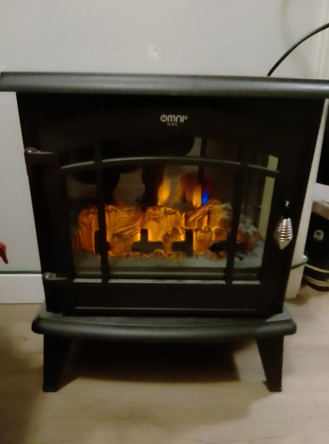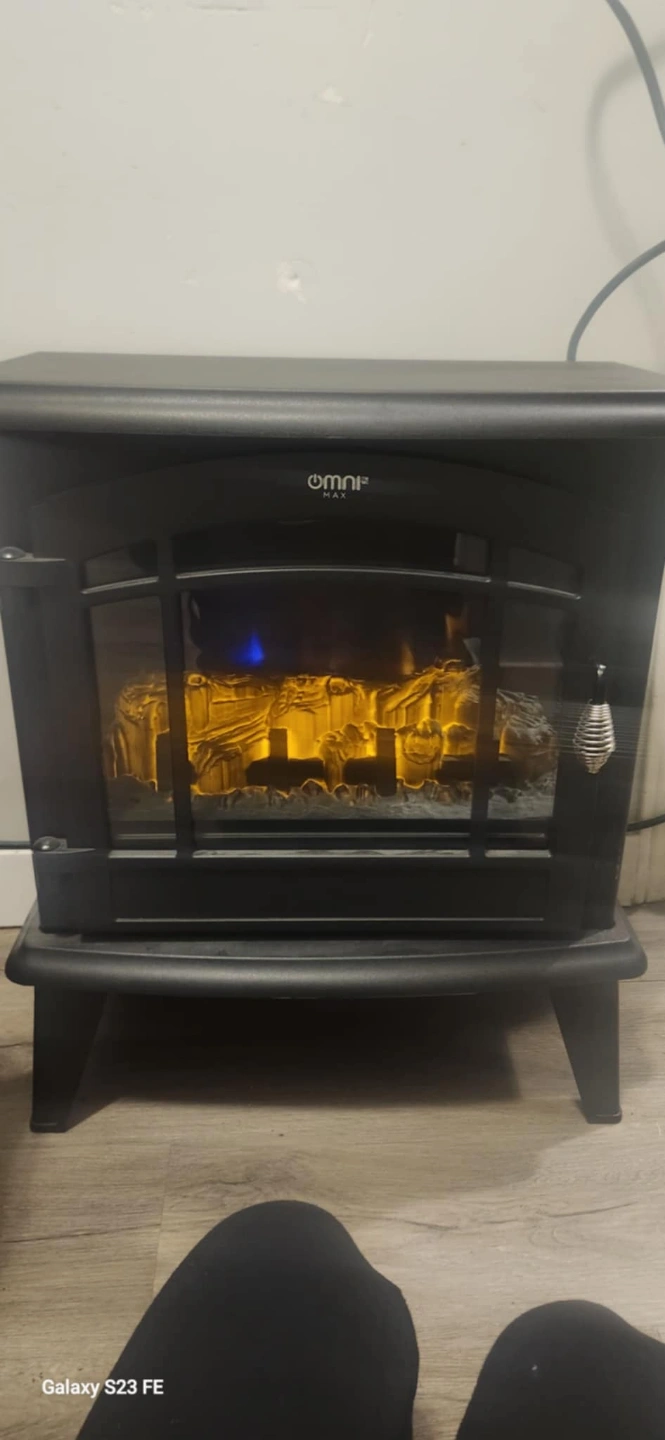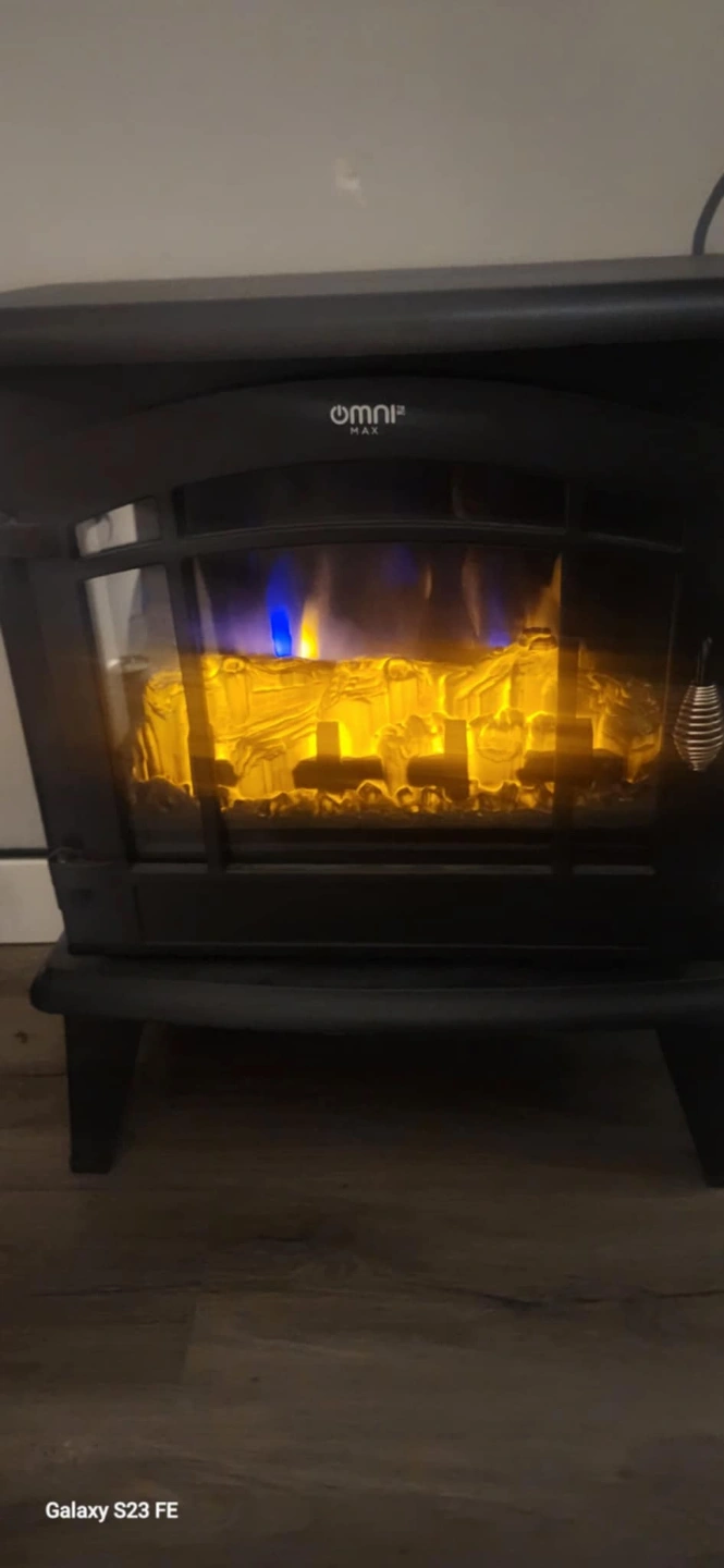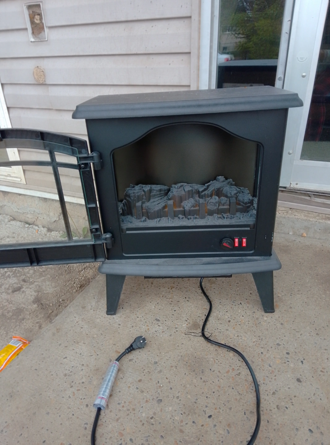 105brand new electric fireplace works like new 3 glass panels and beautiful led fire effect safe and doesn't make a sound very quiet perfect for tv stand or decor