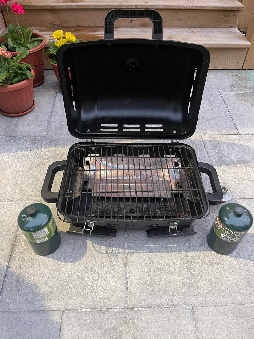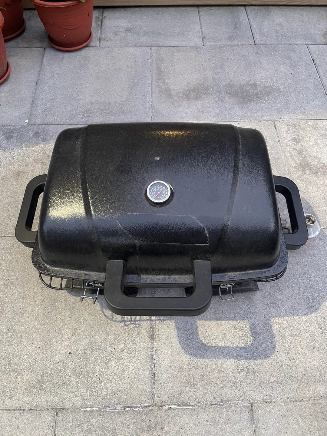 I'm selling my portable propane BBQ, perfect for small spaces or taking on the go, it heats up quickly and efficiently. Features a built-in temperature gauge and two side handles. Includes grill grate and two propane tanks.
