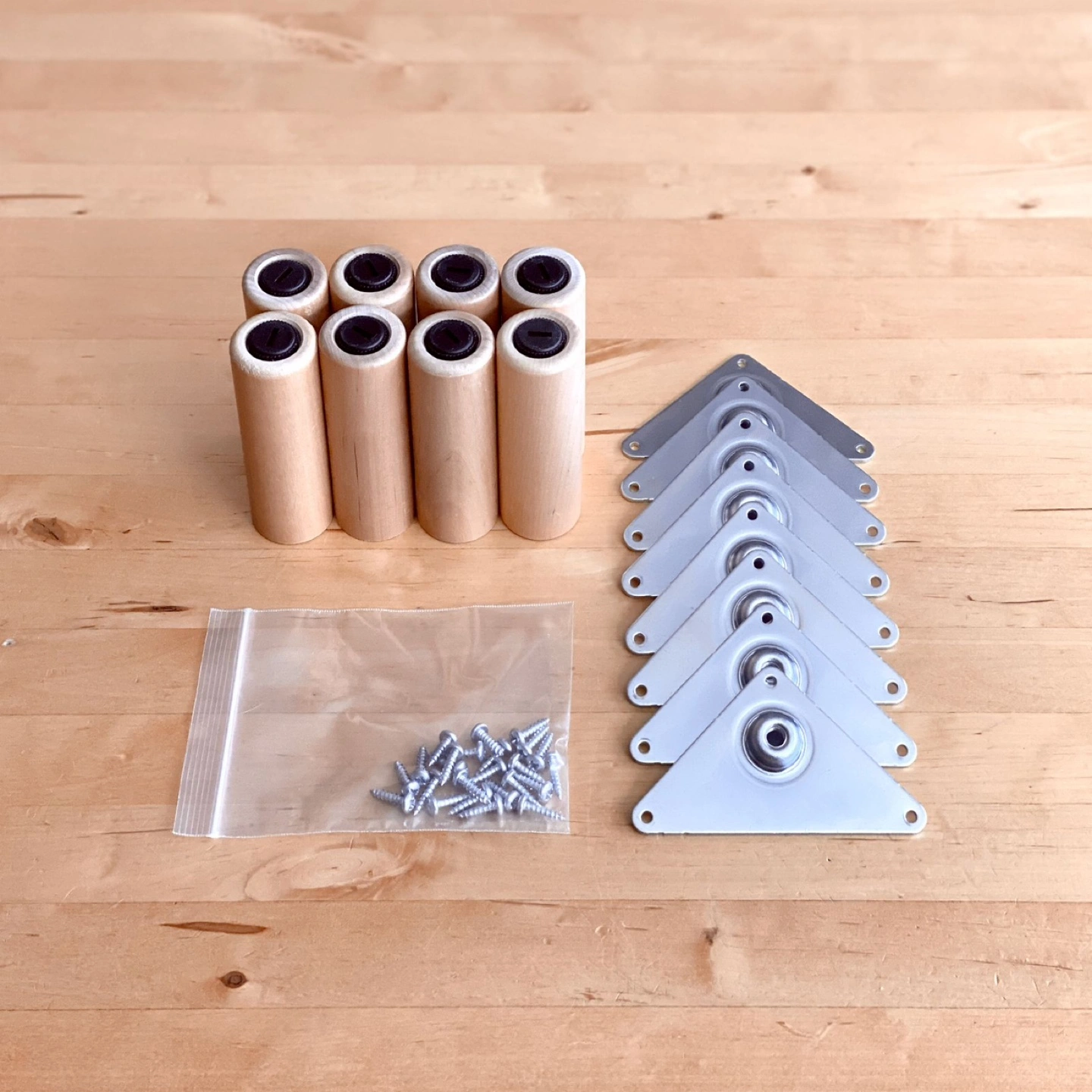 8 legs complete with hardware. Birch wood with the ability to adjust to uneven floors.