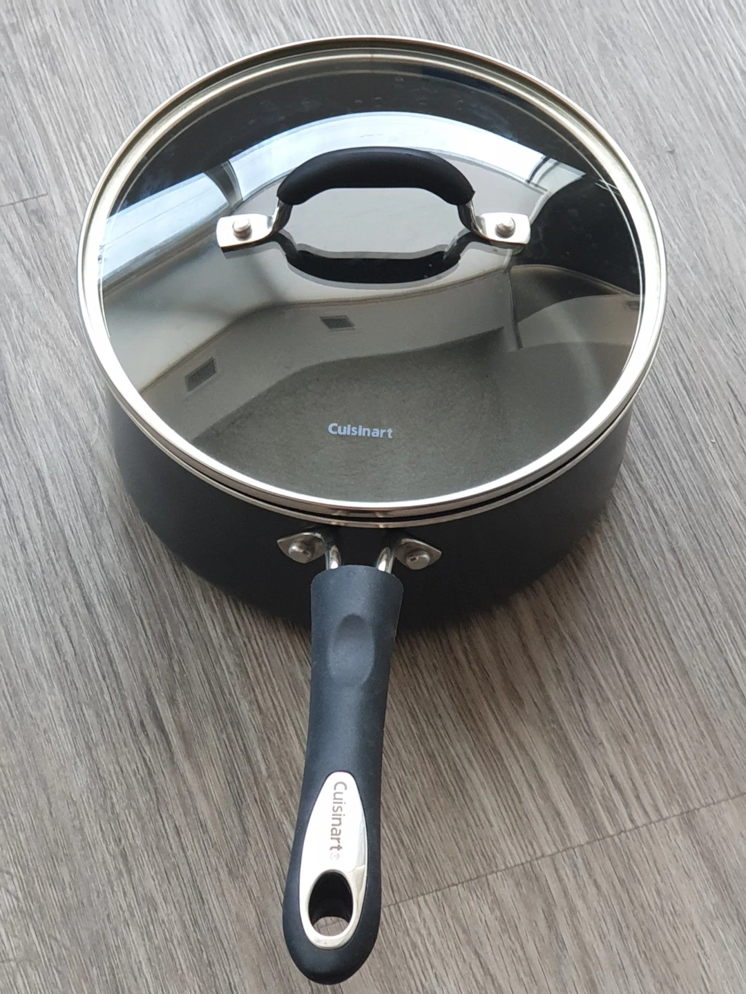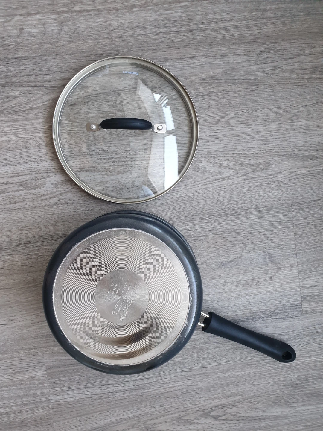VGUC. No chips, dents or scratches, but has a stain at the bottom that does not affect performance or use. Letting go because this doesn't work on our new Induction Stovetop.