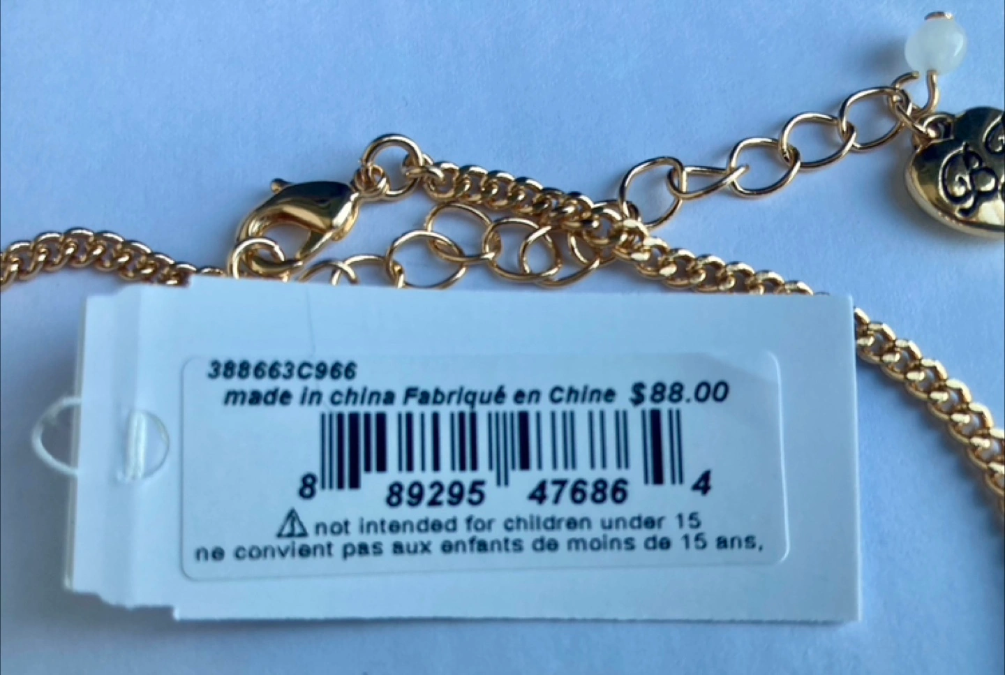 Striking curb chain necklace featuring butterfly motif charms at front adorned with delicate pastel multi-colored stone accents. This charming necklace is set in polished gold-tone metal and has an adjustable lobster clasp closure.