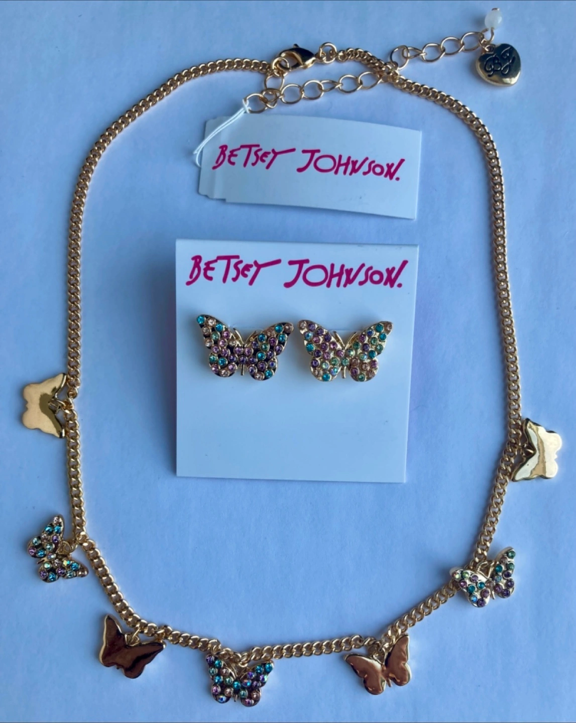 BETSEY JOHNSON Butterfly Love Necklace Earrings Studs Set