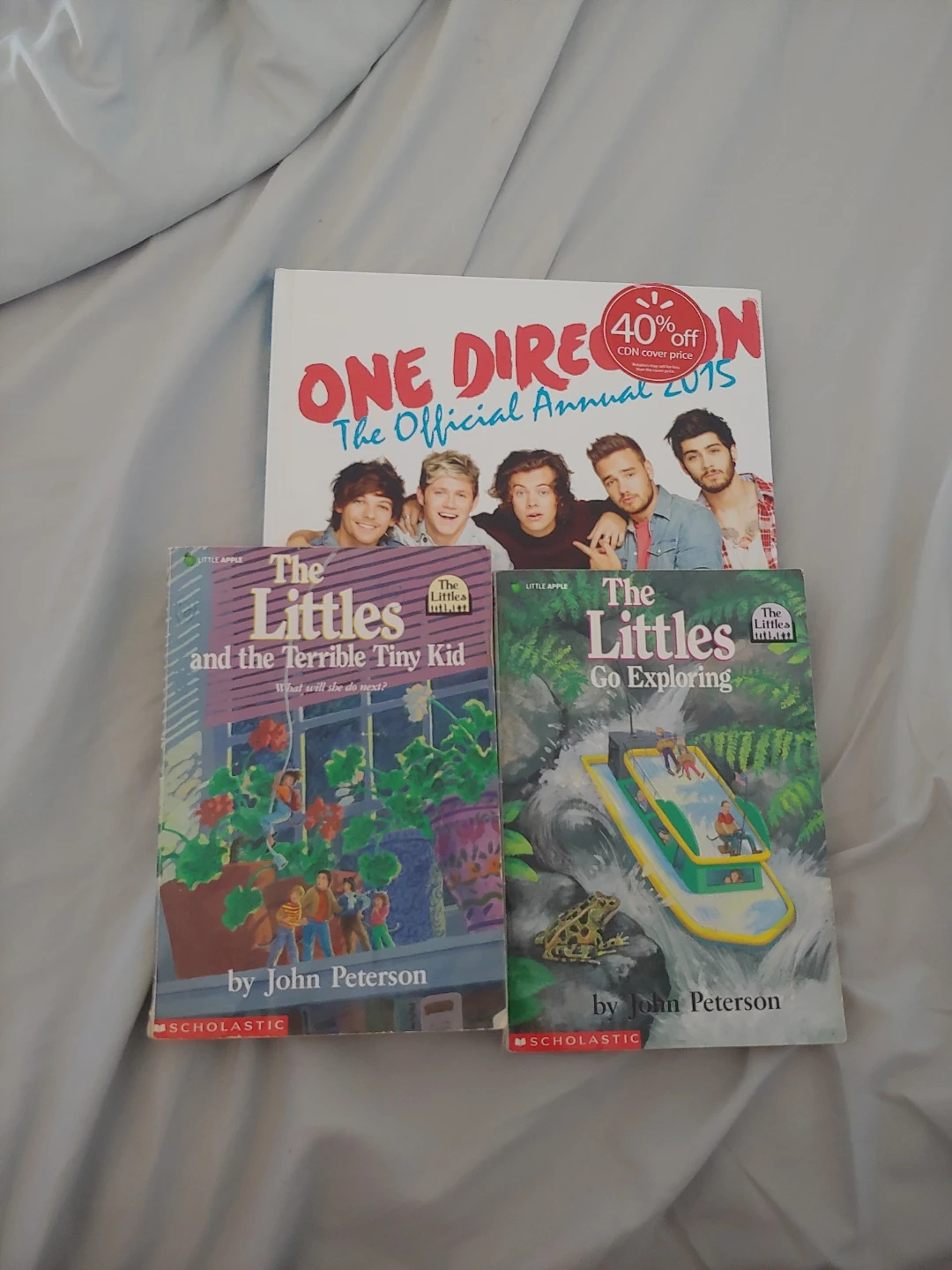One Direction Official Annual 2015. Two Scholastic The Littles books: The Littles and the Terrible Tiny Kid and The Littles Go Exploring. Good condition.
