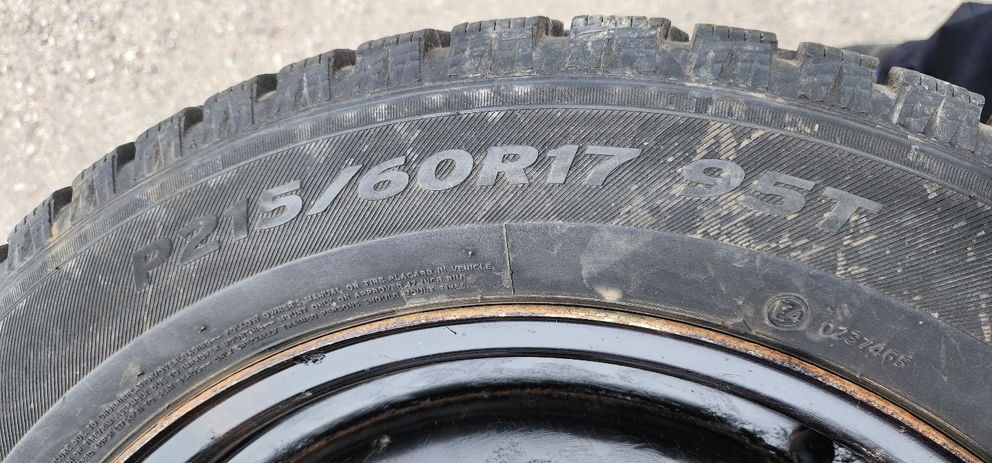 These Hankook i*Pike Winter Tires are in excellent condition. Size is P215/60R17. They have very little wear and come on steel rims.