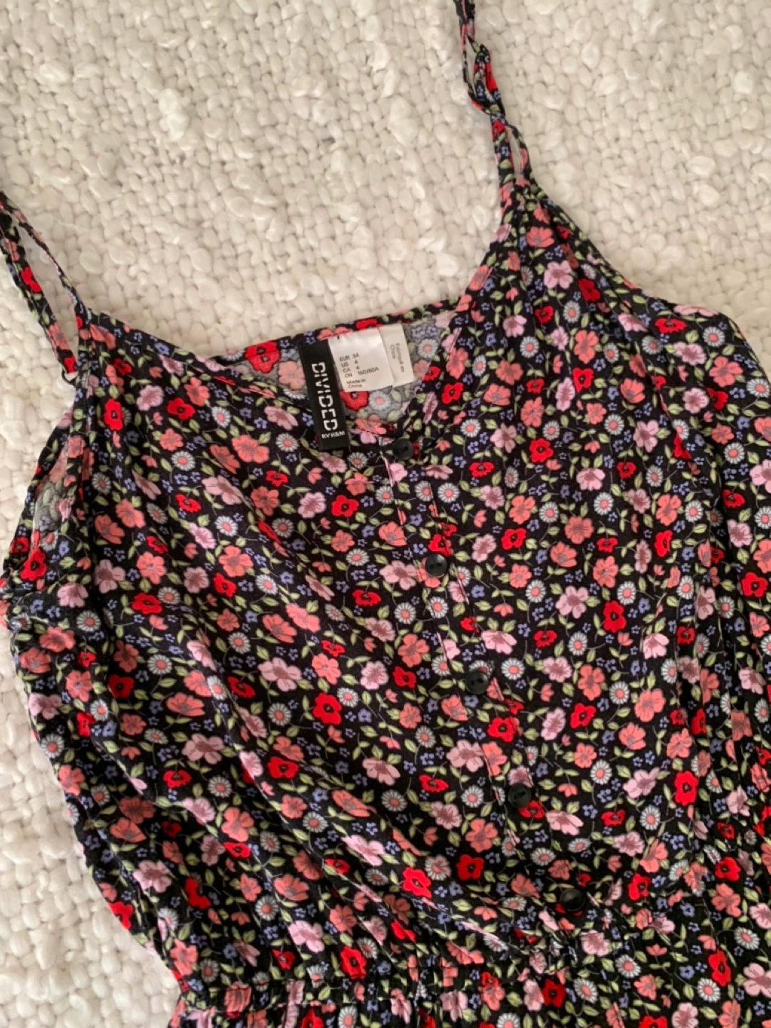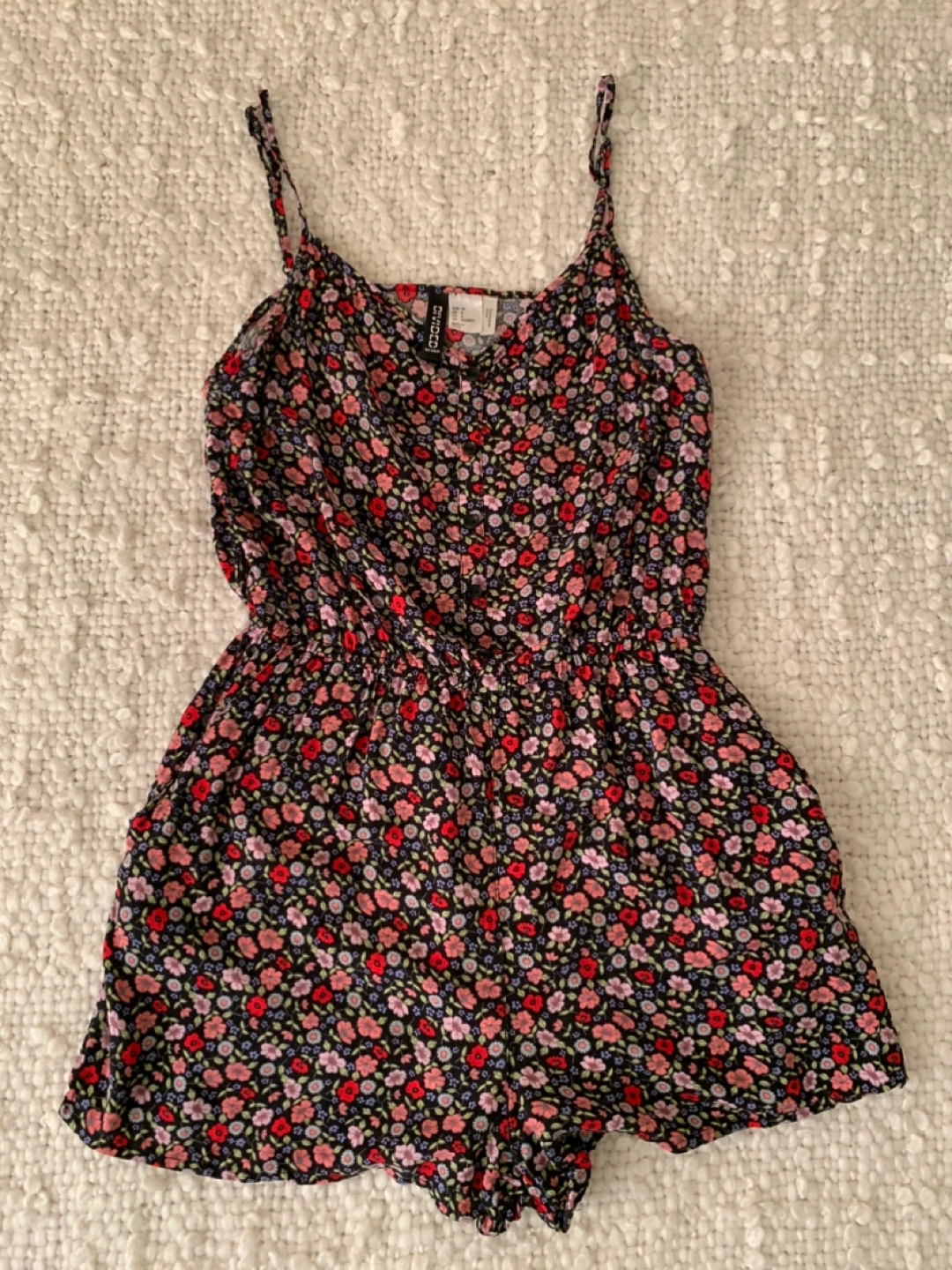 Cute floral romper, size 4 on tag but has shrunken in wash to size 2. Elastic waist very comfy.