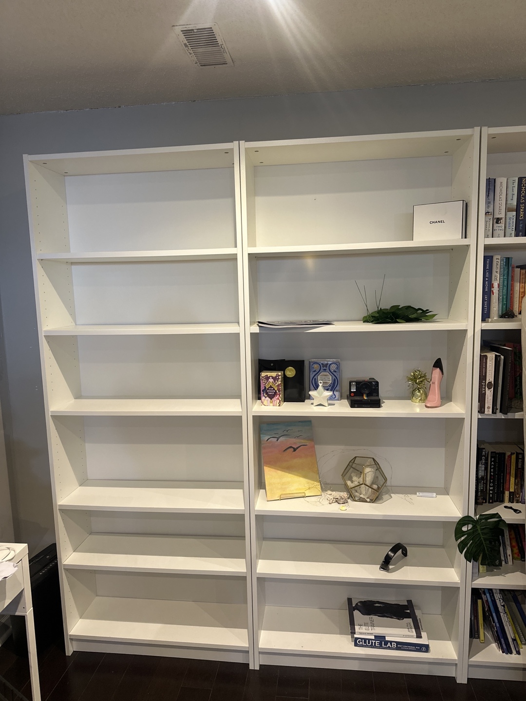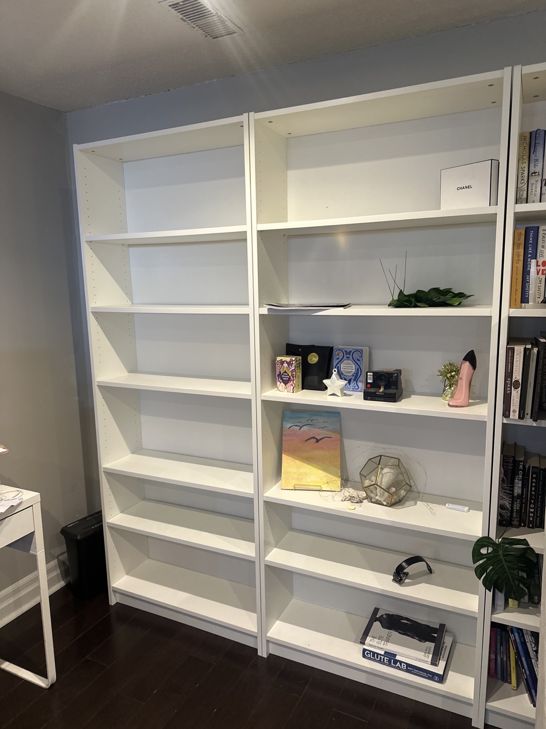 Two tall white Billy bookcases from IKEA. Lots of shelving. Great condition. Dimensions in images. Perfect for home organization and book lovers.