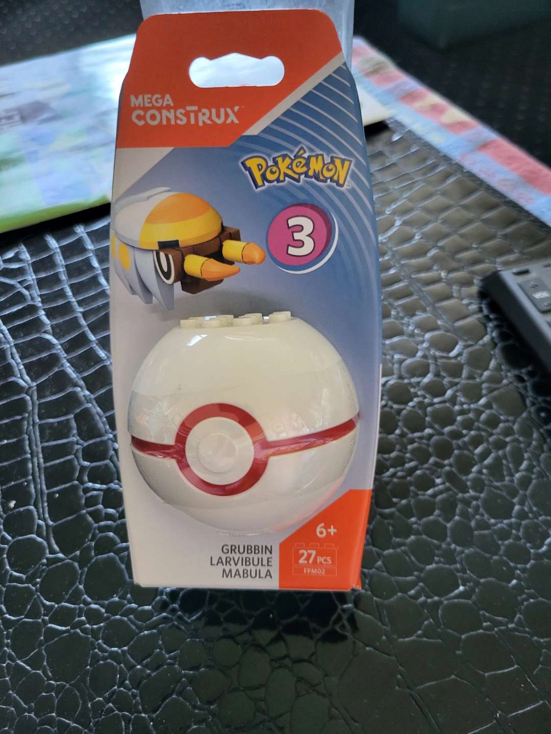 New, sealed Mega Construx Pokémon building set. Features Grubbin, 27 pieces, Poke Ball. Collectible item!