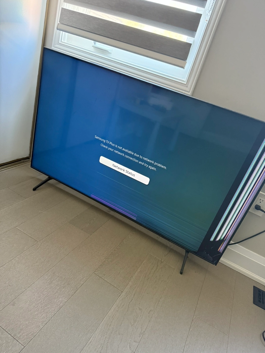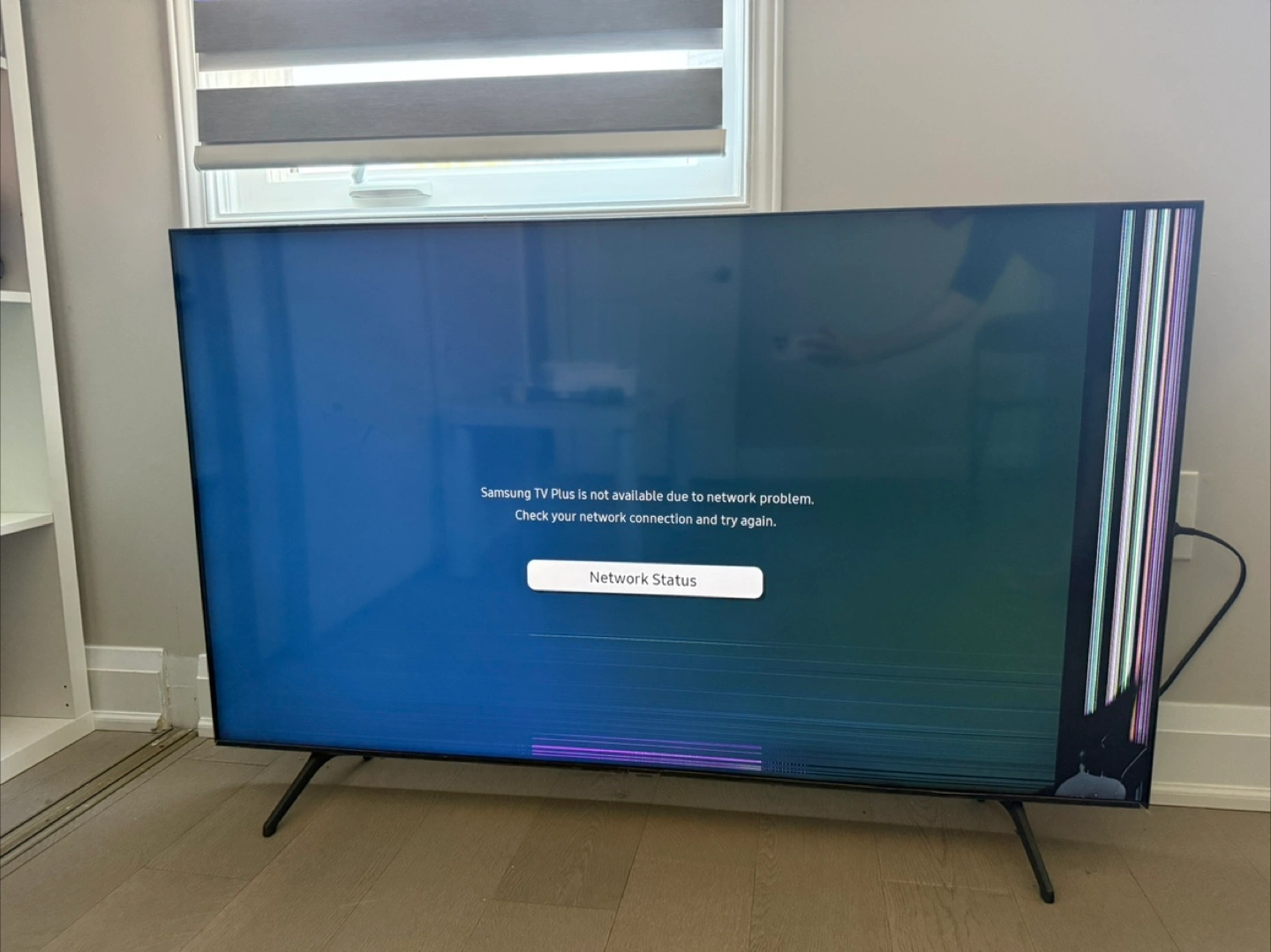 Large screen 58 Inches Samsung Smart TV. Screen damage visible. Sold as-is for parts or repair.