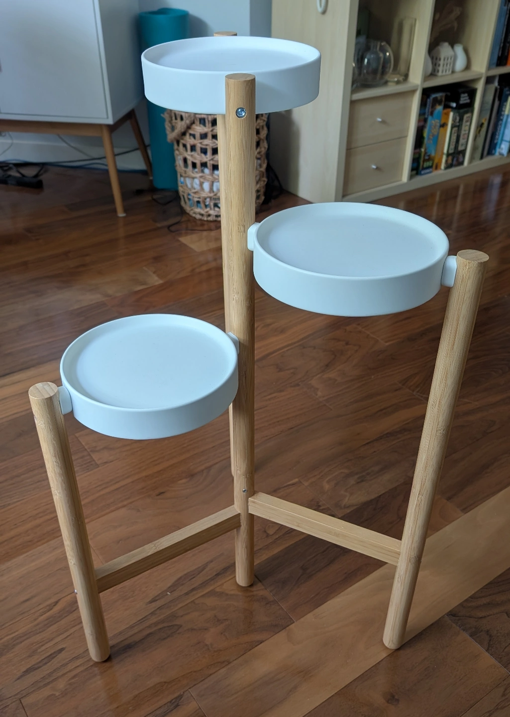 Ikea bamboo and steel plant stand. Three circular shelves. Good condition.
