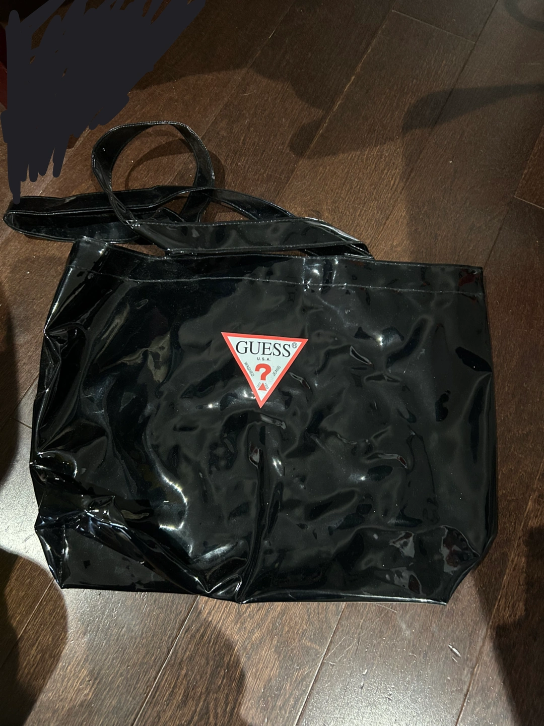Vintage Y2K GUESS Black Patent Tote Bag