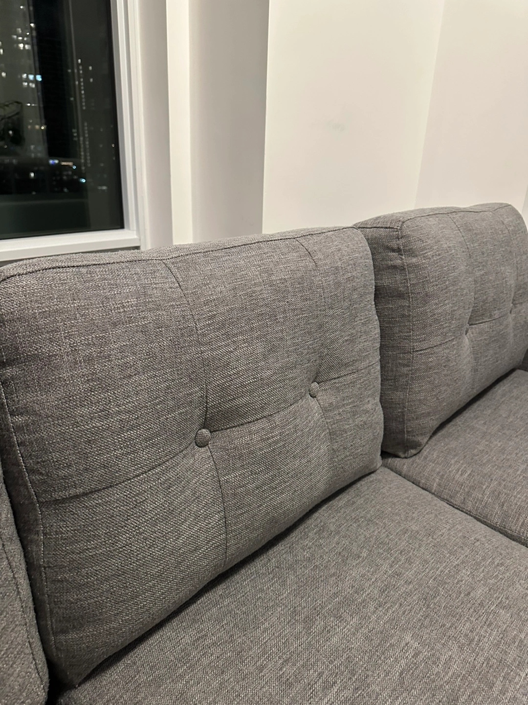It’s super comfy, with deep seats perfect for lounging, and the neutral grey fabric fits effortlessly into any space.