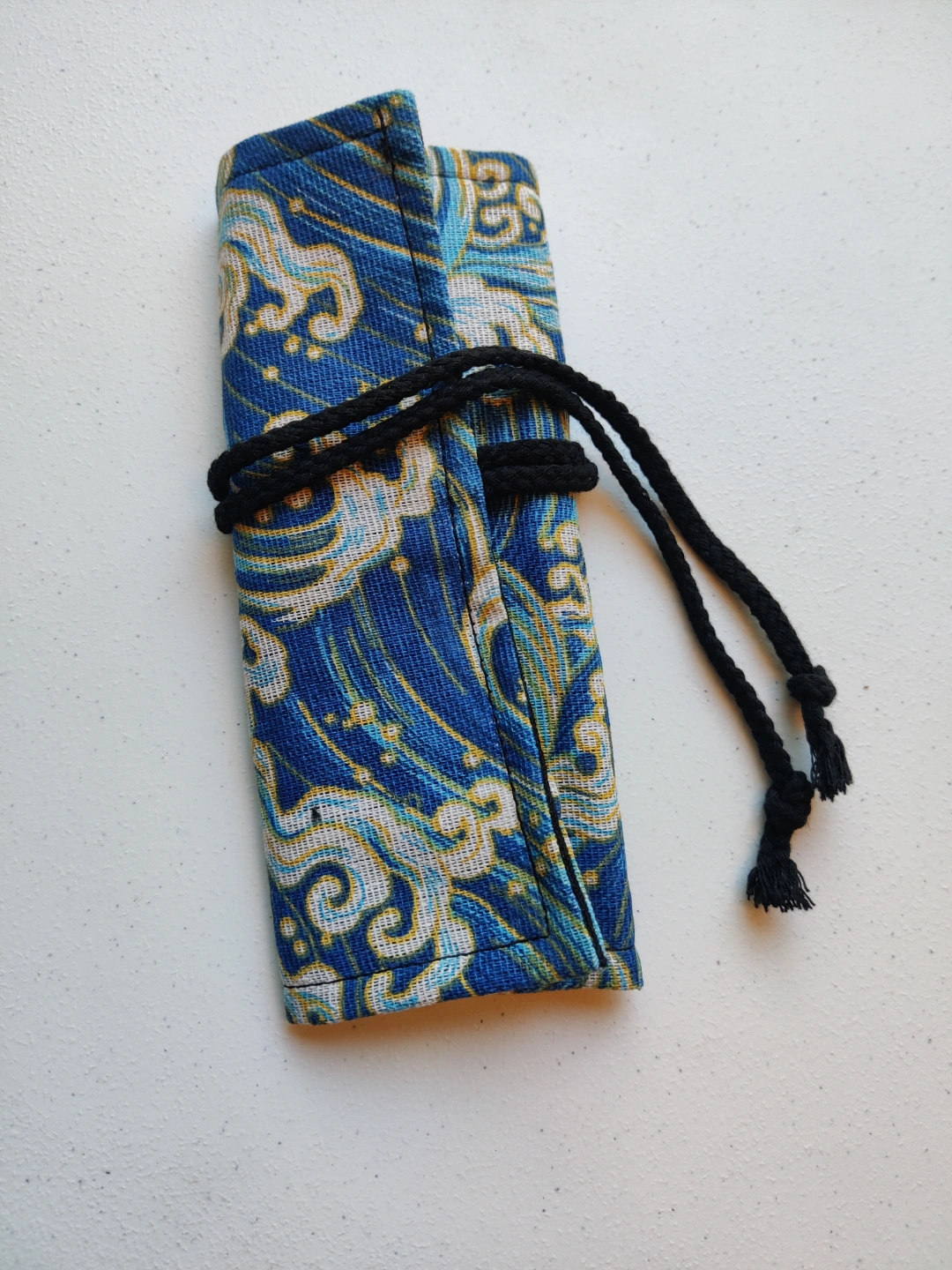 brand new - Classic and portable cloth pen holder. Features a blue ocean wave design. Holds twelve pencils or other writing utensils. Drawstring closure. Great for artists and students.