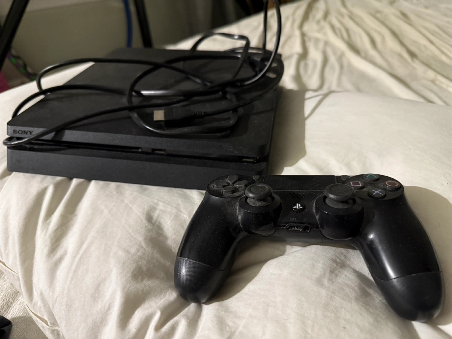 286Pre-owned PlayStation 4 Slim console. Includes one controller. Minor wear and tear.