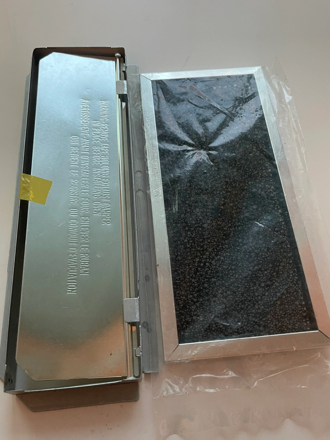 New range hood charcoal filter and metal housing. Includes filter and metal frame. 💘Reason to sell: Bought Wrong 📍Pick Up At 35 Bay St., Toronto, ON M5J 3B2, Canada 💰Cash only 📣No return please